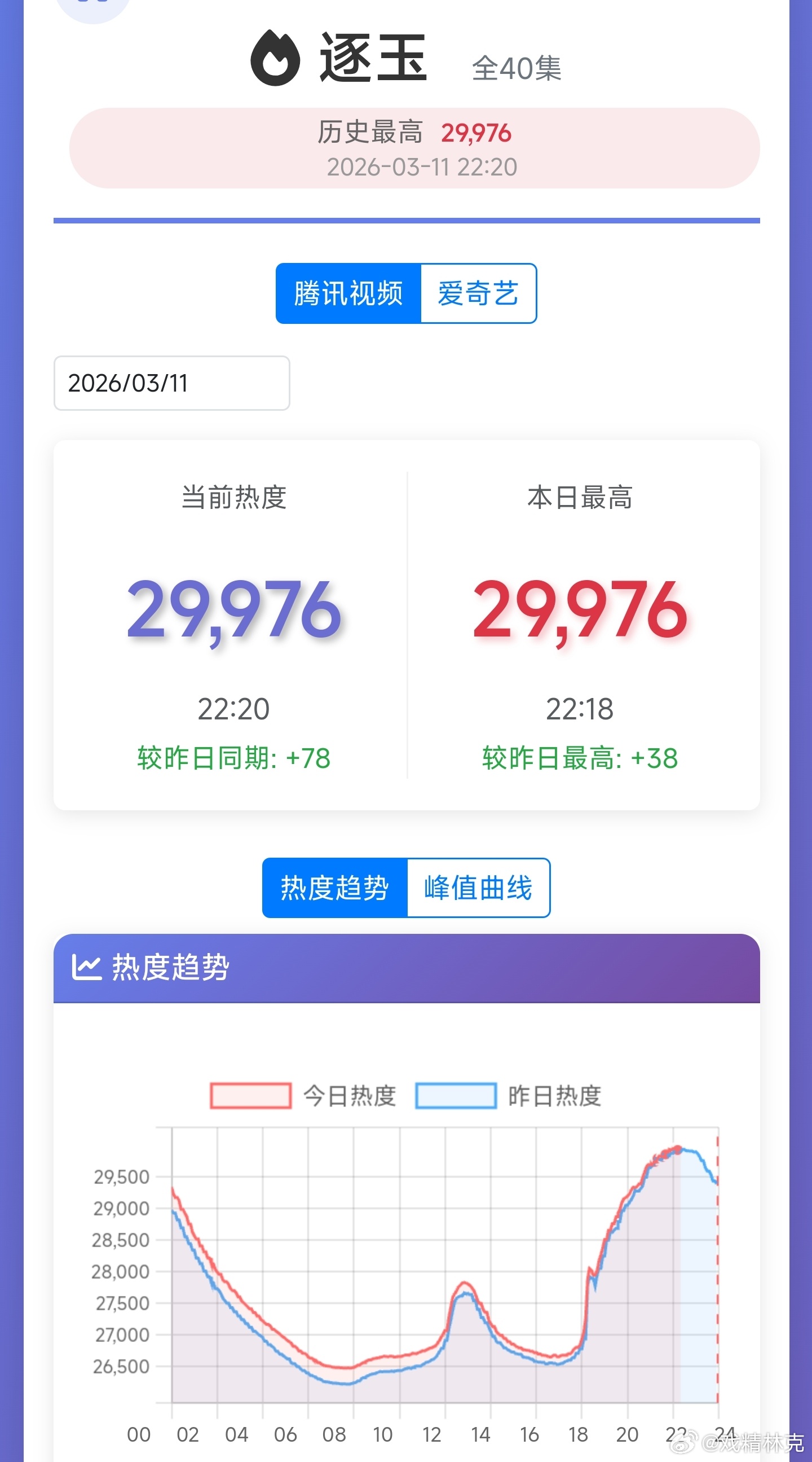 逐玉腾讯热度破30000倒计时,会再卡一天吗