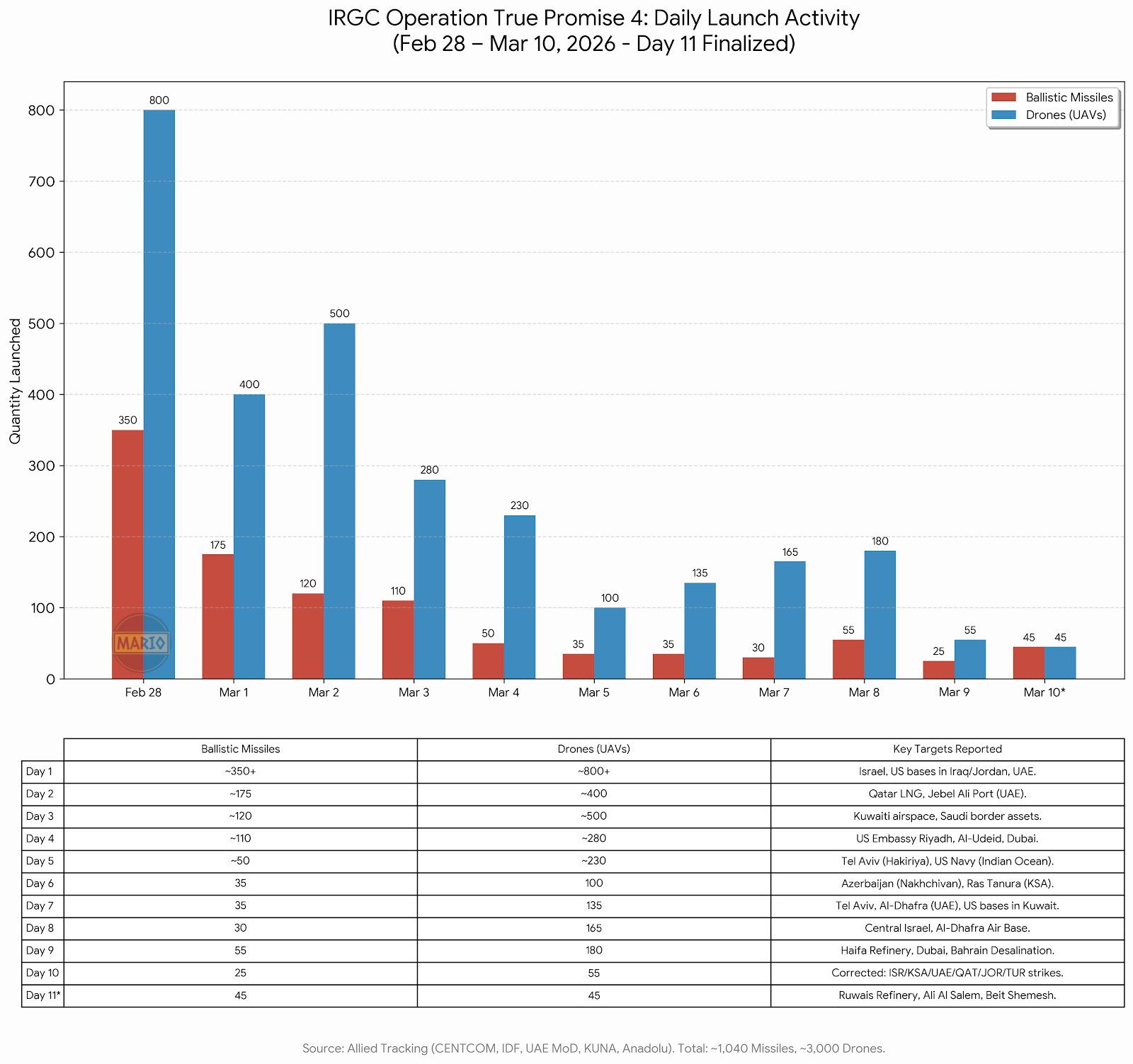 美伊以冲突美伊以冲突 开源分析人士总结的美以伊战争D11,伊朗发射的导弹略有回升,无人机略有下滑