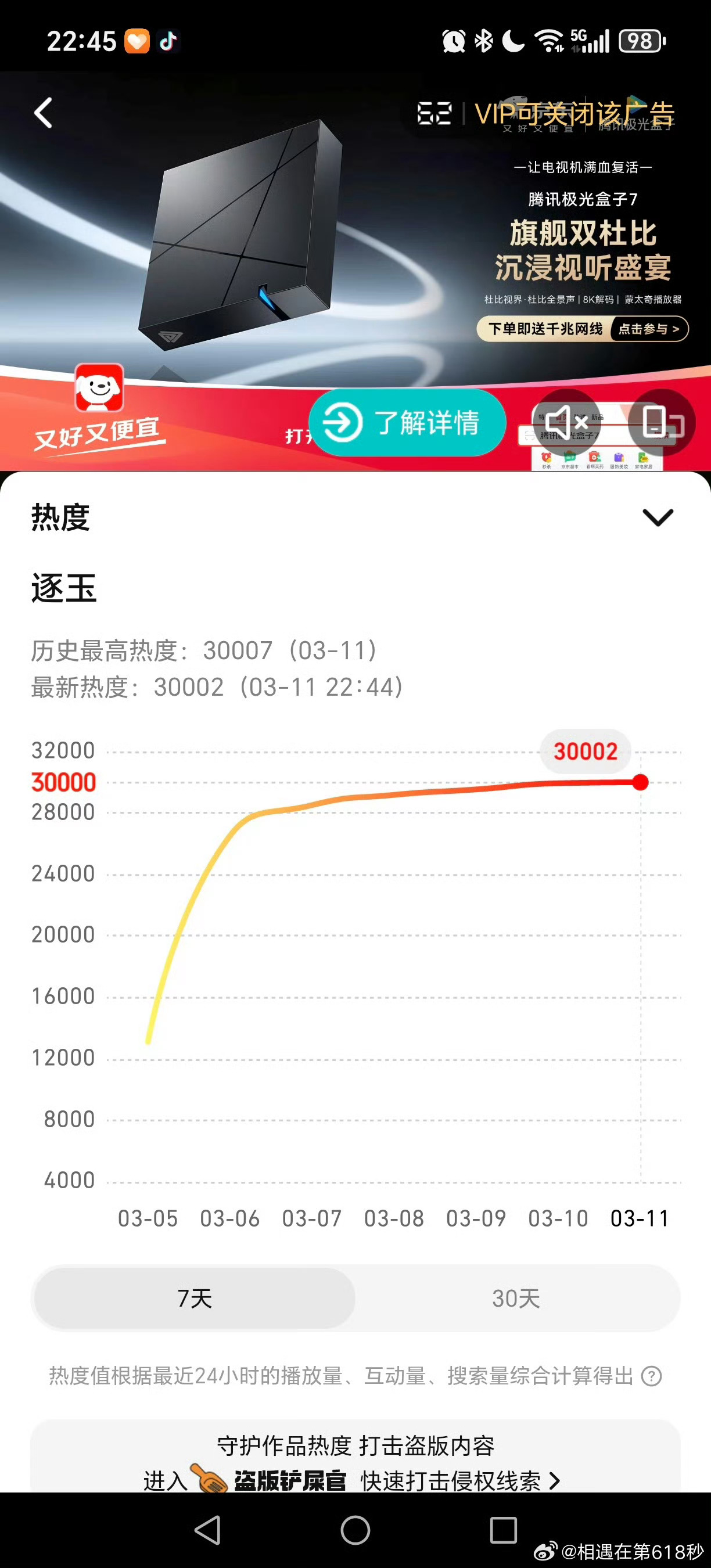 逐玉腾讯破万了!双平台破万来了!