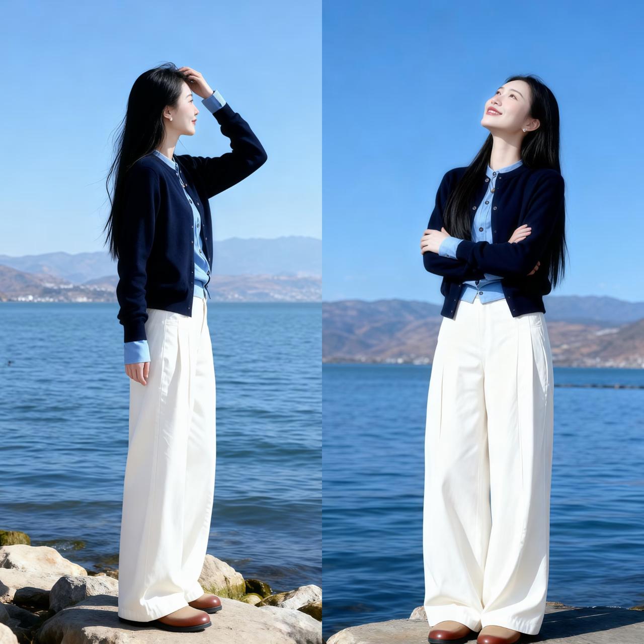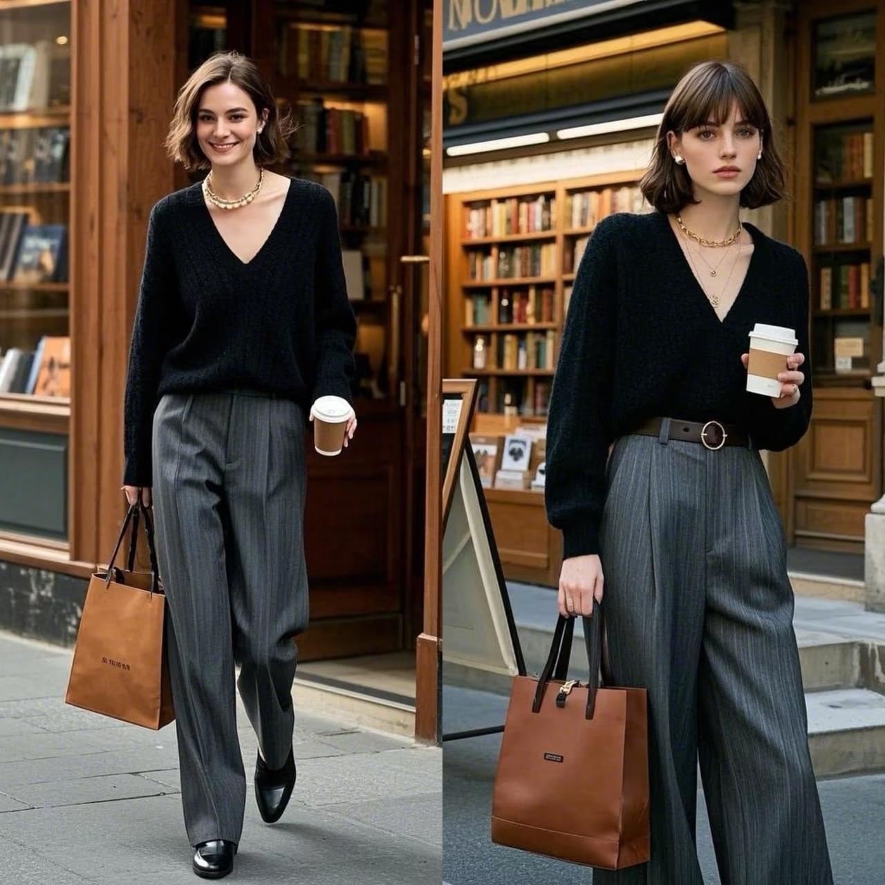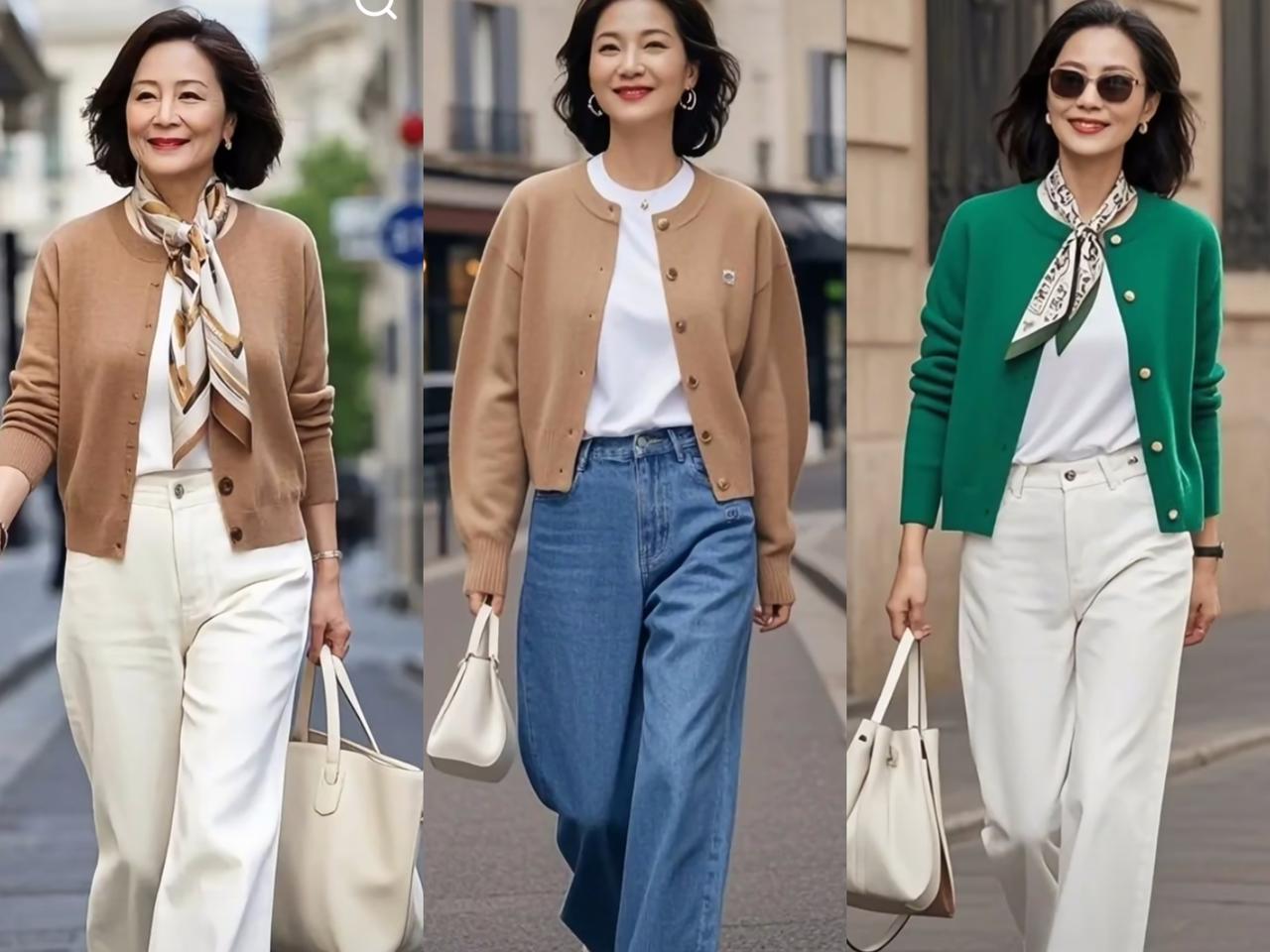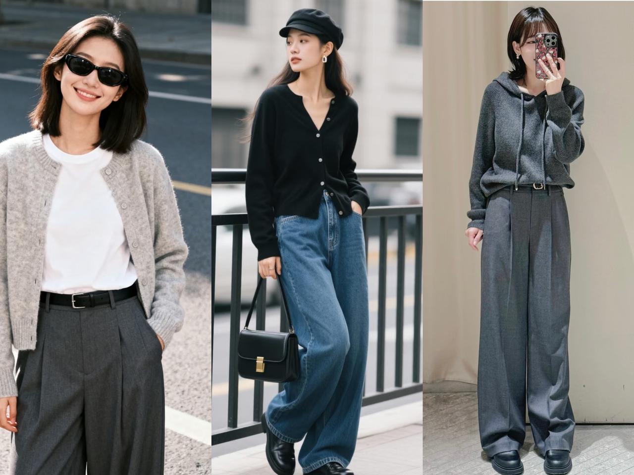 春天针织衫十阔腿裤这样穿更好看,普通人也能穿出气质感 每年春天,针织衫+阔腿裤都是穿搭频率较高的单品,因为款式基础,搭配简单,每个中年女性都适合穿着,还能穿出遮肉显瘦效果。 虽然,这组搭配适合人群广泛,并不代表人人能穿得好看显气质。这组看似简单的组合,其实藏着很多人不注意的搭配细节。不同款式的针织衫+阔腿裤组合,都有不同巧思。 都知道,针织衫有不同款式,有套头款、开衫款、连帽款等,在和阔腿裤搭配时,不同款式的针织衫选择的搭配方式不同,打造出来的造型不一样。 比如套头针织衫,选择合体微宽松V领针织衫,更适合普通人,修饰身形还拉长脖颈线条。不用叠穿任何单品,直接和阔腿裤搭配,衣摆塞进裤腰里,凸显出腰线和比例,轻松穿出利落显腿长造型,气质优雅大方。 而选择针织开衫搭配时,更适合选择合体款式,长度在胯骨左右,视觉上就抬高腰线。再内搭T恤衫打底,敞开扣子穿搭,让视线锁定在内搭高腰线上,呈现出完美三七比例,舒适好看又显瘦显高。 如果你穿的是像卫衣款式的连帽领针织衫,要是颜色偏深,则需要选择一件稍长点的白色T恤衫打底。露出领子和底摆,点亮造型打破沉闷,同时丰富层次感,穿出好看显年轻造型。 这些看似不起眼的搭配细节,却能把普通针织衫穿出不普通形象,让穿搭区别于路人,造型更好看。姐妹们穿针织衫时,如果把这些穿搭巧思用在搭配上,形象自然不一样。 要是在颜色选择上,以基础色搭配为主,气质会更高级,普通人也能穿得和博主们一样。