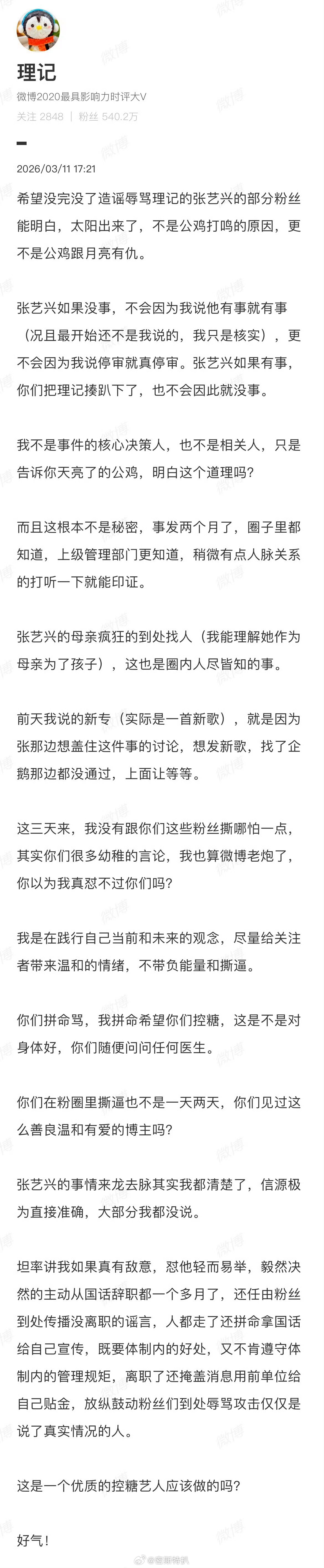 理记跟张艺兴的粉丝开始对峙了,而且越说越多
