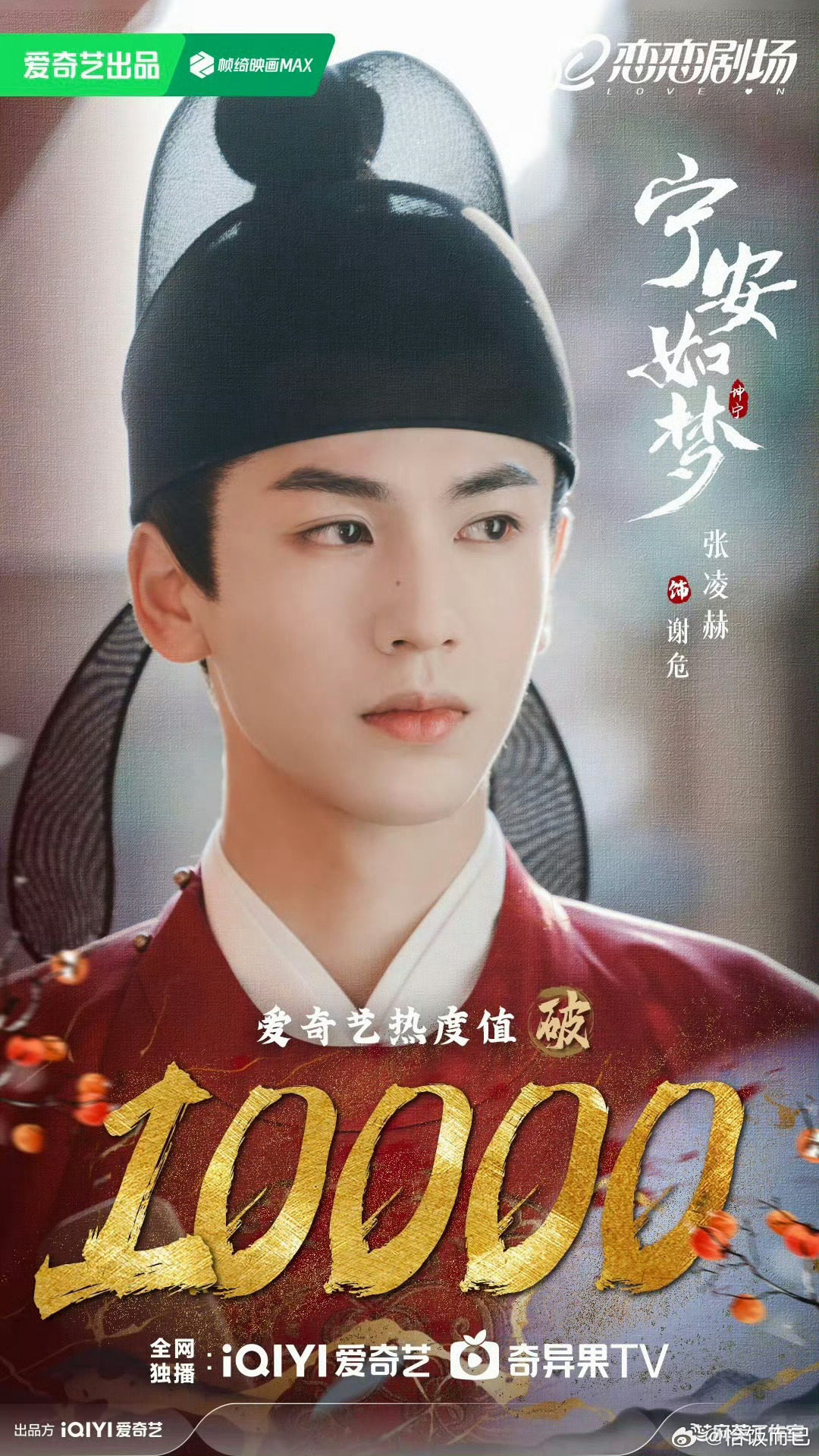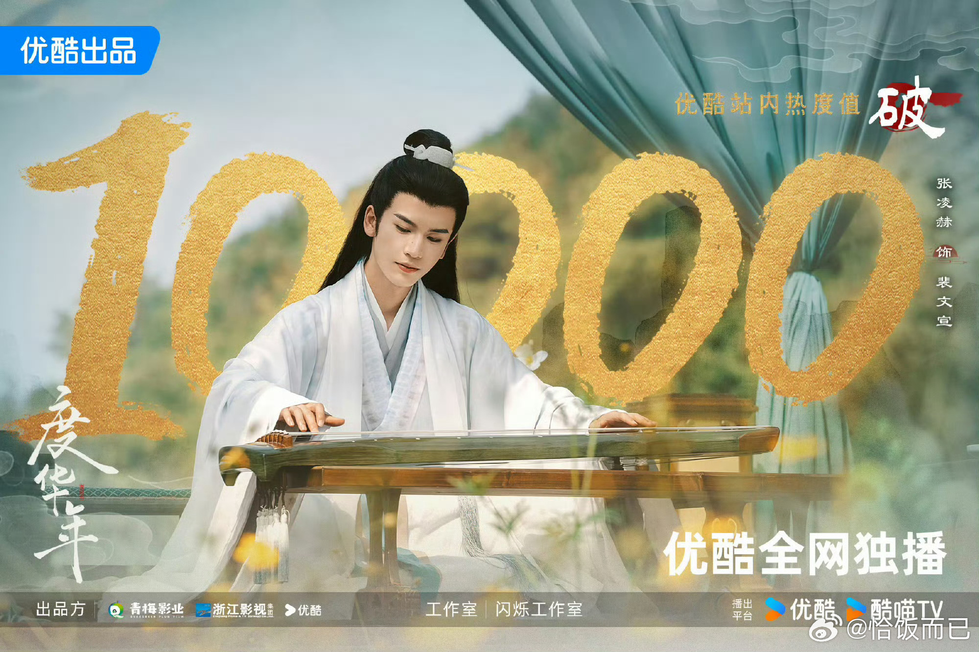 张凌赫成为95生第一且唯一三平台破万男主,逐玉,宁安如梦,度华年