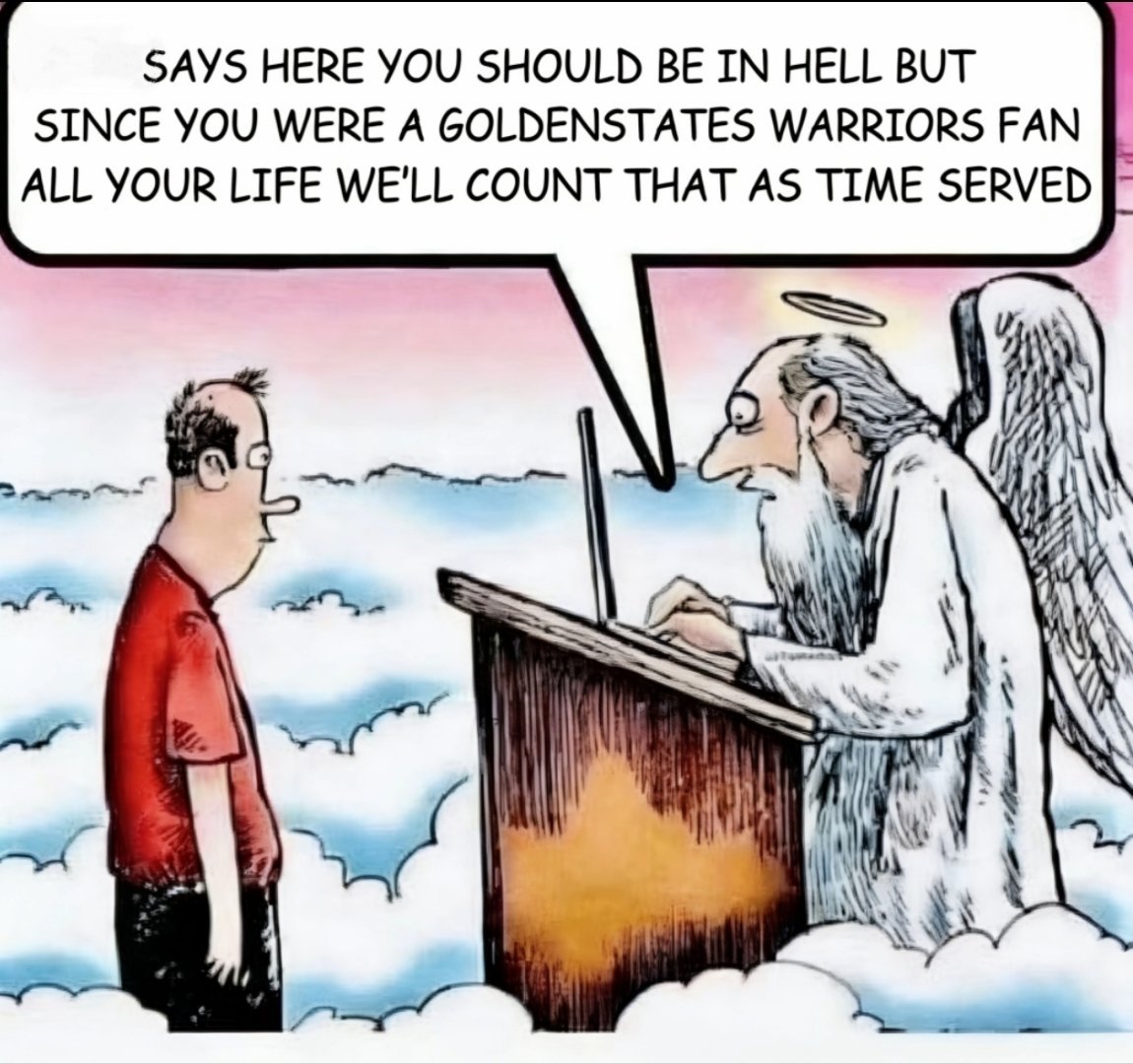 你本来应该下地狱的,但鉴于你一辈子都是勇士球迷(在地狱待的时间足够长了),你已经可以刑满释放(可以直升天堂了)
