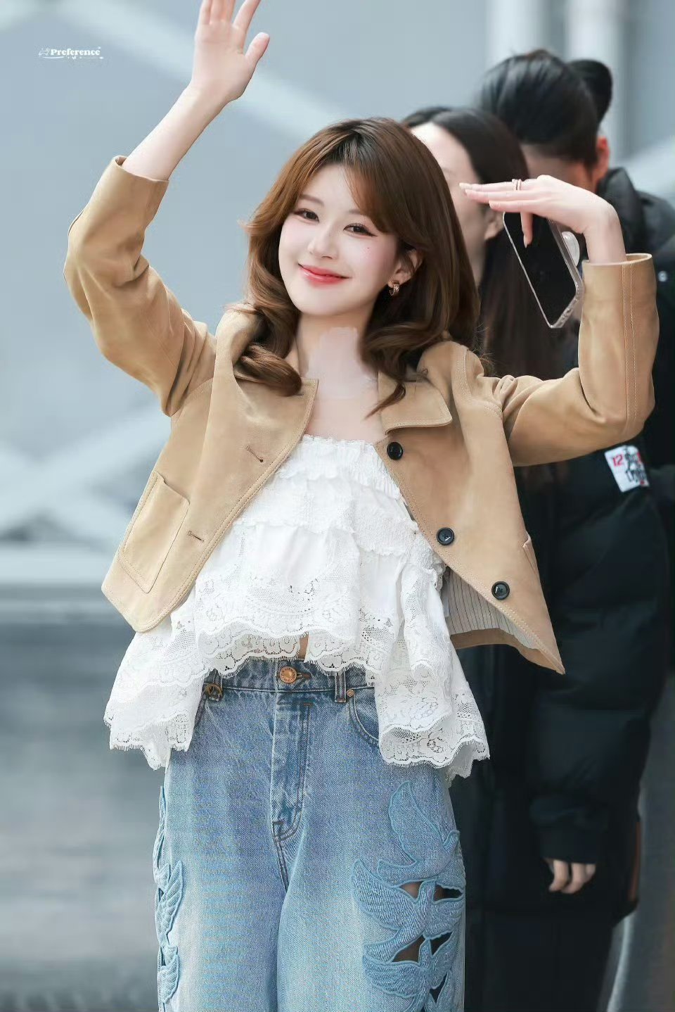 刘亦菲这条裤子挺养生,毕竟降温了肚脐眼必须护住啊