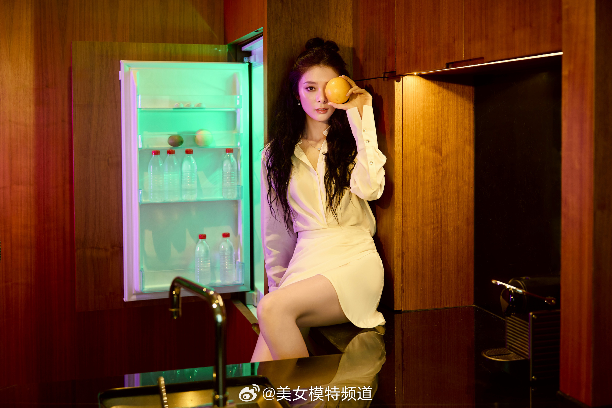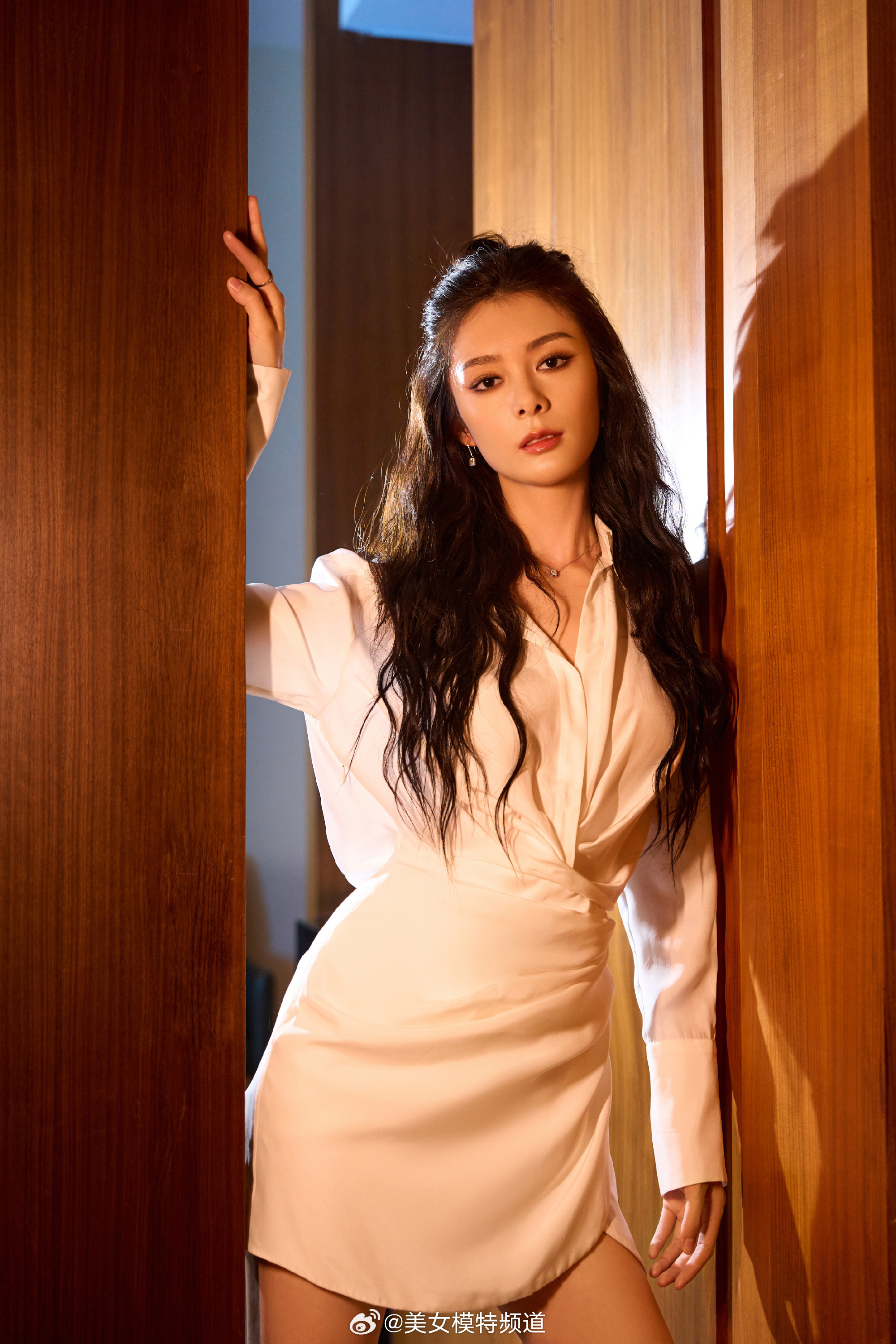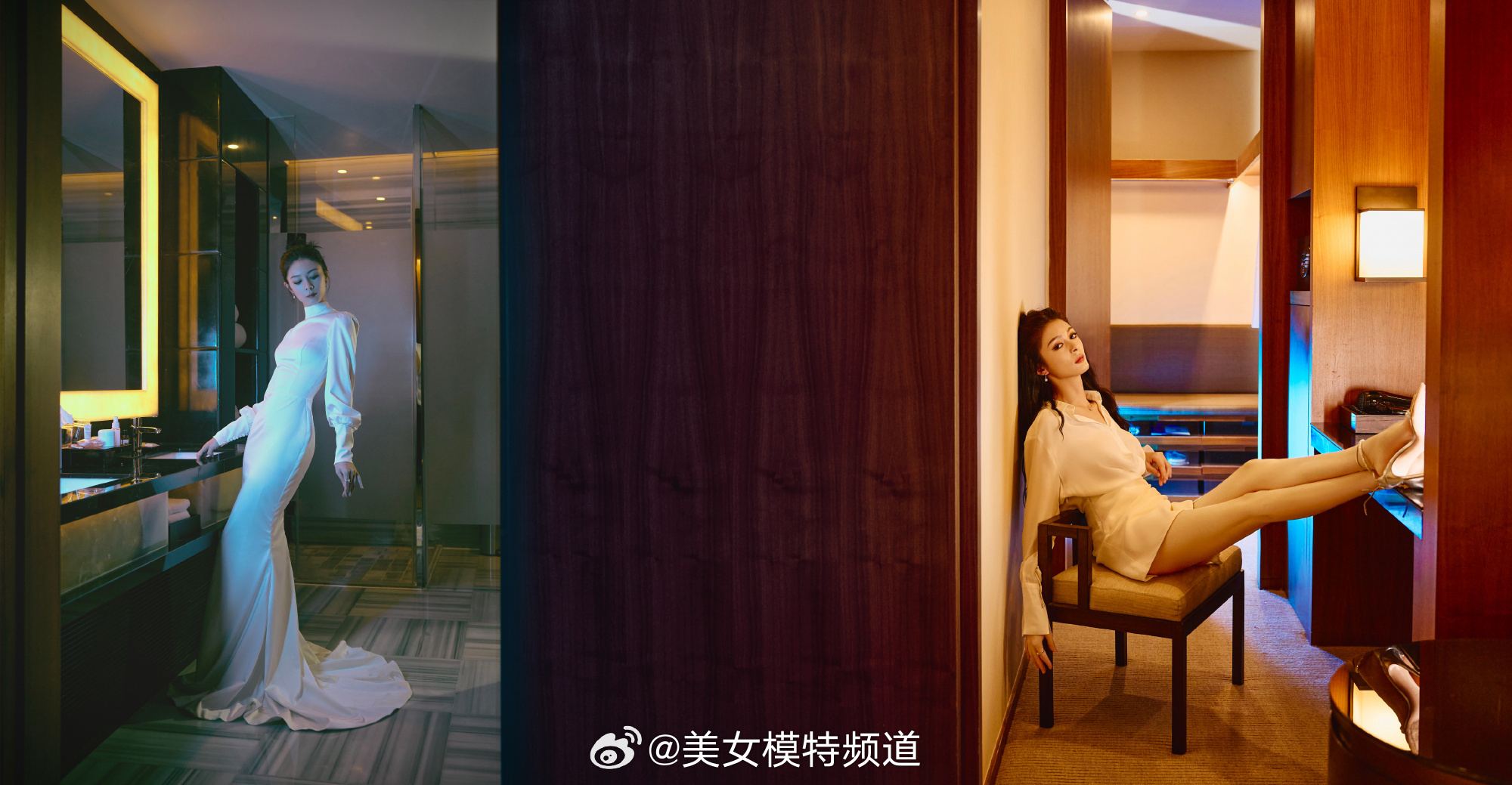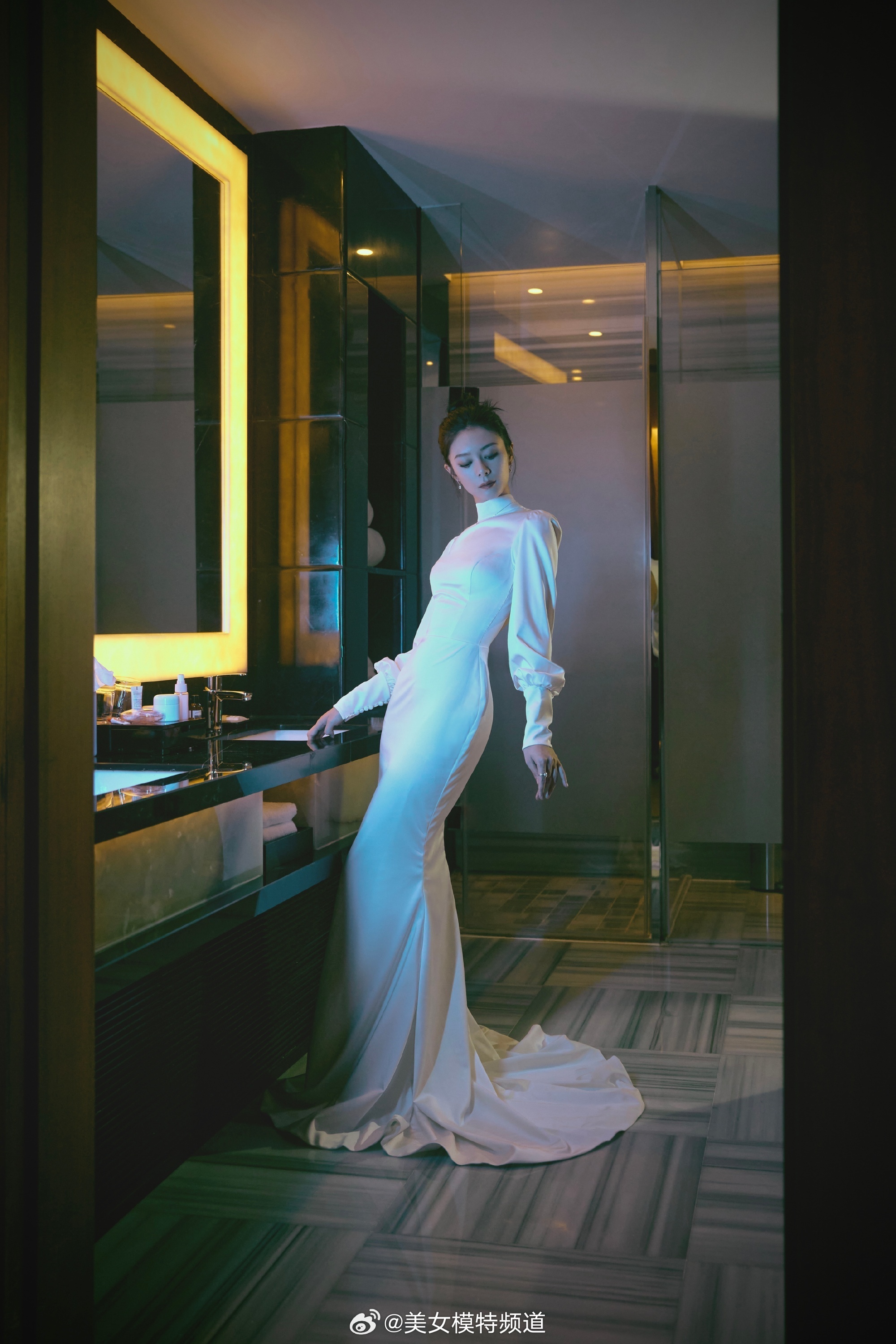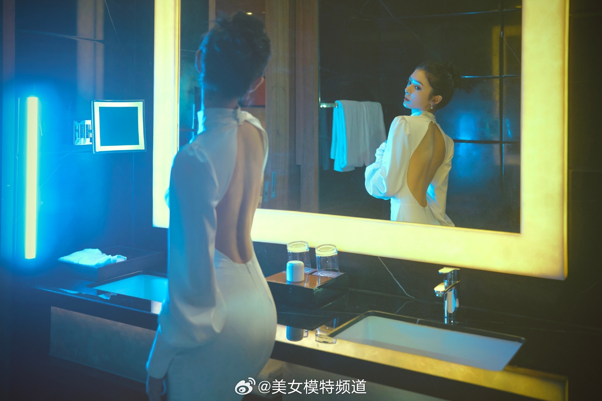 傅菁白色露背礼服裙造型大片