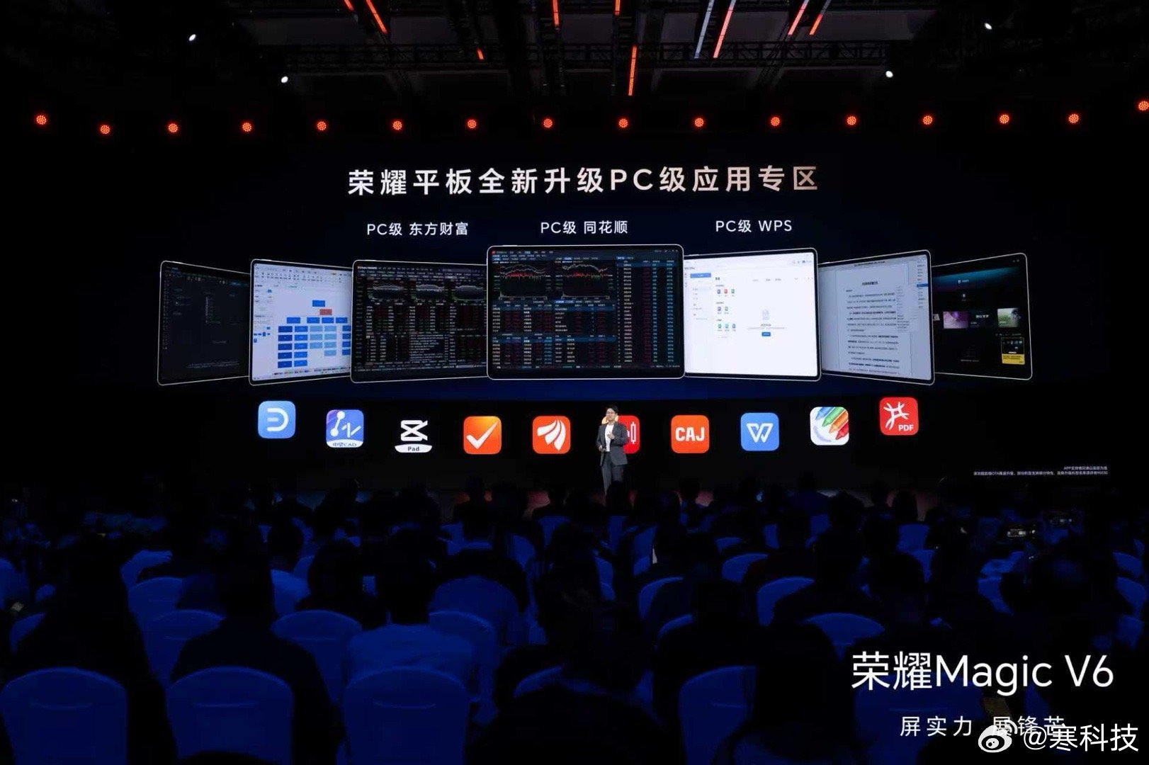 荣耀平板这次干了件新鲜事:专门搞了个“电脑级软件专区”。里面放的不是普通手机版APP,而是真正能在电脑上运行的专业软件,比如东方财富、同花顺的电脑版,还有WPS、CAD、CAJ这些办公、画图、看论文的专业工具。