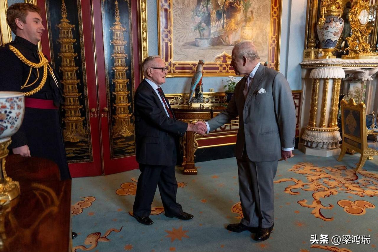 英国国王查尔斯三世于 2026年3月11日 在白金汉宫接见了现年 105岁 的二战老兵、英国皇家空军中尉科林·贝尔 (Colin Bell)。 现年105岁的贝尔中尉曾是二战期间英国皇家空军的蚊式战斗机飞行员。他是目前已知的最后一位曾在二战中驾驶 “蚊式” (Mosquito) 轰炸机的幸存飞行员。他在战争期间共执行了 50 次轰炸任务,其中包括 13 次飞往柏林的危险行动。在会面期间,贝尔中尉向国王赠送了一本他的回忆录 《极其危险》(Bloody Dangerous),书中记录了他在空军服役期间的非凡往事。 查尔斯国王在白金汉宫的“中国会客厅”(Chinese Drawing Room)亲手向贝尔中尉颁发了其杰出飞行十字勋章 (Distinguished Flying Cross, DFC) 的引文证书。这枚勋章最初由查尔斯国王的祖父乔治六世在 1945 年授予贝尔,以表彰他在战争中的英勇表现。