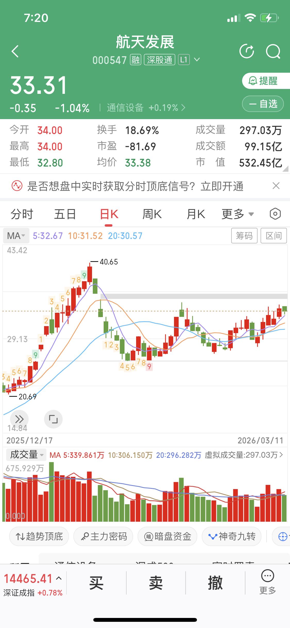 3月12日商业航天真到了变盘关键时刻。 此前,3月9日A股放量杀跌,商业航天却逆势抗跌,3月10日迎来变盘窗口。3月11日形势急转,昨天航天发展等商业航天情绪总龙下跌,进入横盘震荡。要是今天不放量上攻,大概率会大跌,得注意风险。 反观金风科技,它属于风力设备板块,还参股蓝箭航天。昨天放量突破压力位,从走势来看,今天看涨的可能性很大。 投资就是这样风云变幻,商业航天的这次变盘,不知道又会让多少人几家欢喜几家愁。