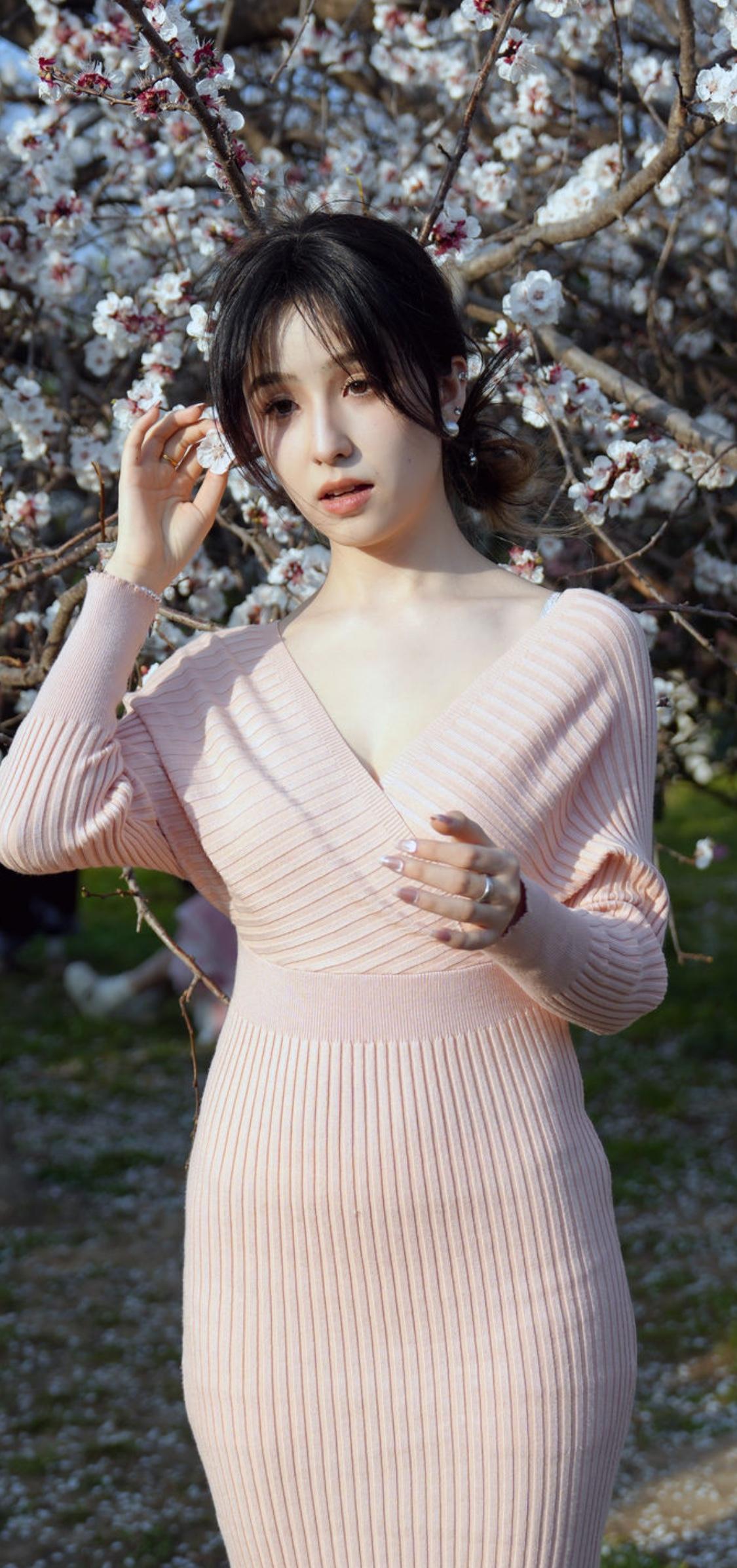 樱花树下,温柔少女,粉色连衣裙,春日气息扑面而来🌸💕