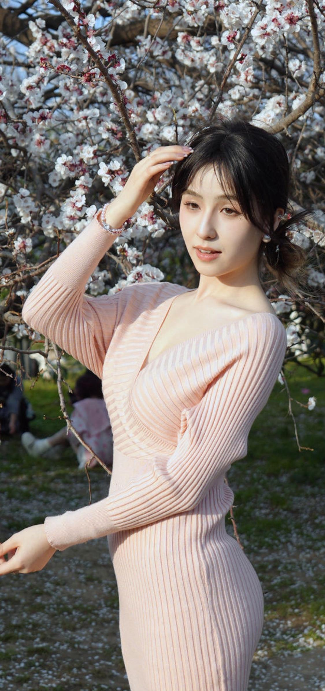 樱花树下,温柔少女,粉色连衣裙,春日气息扑面而来🌸💕