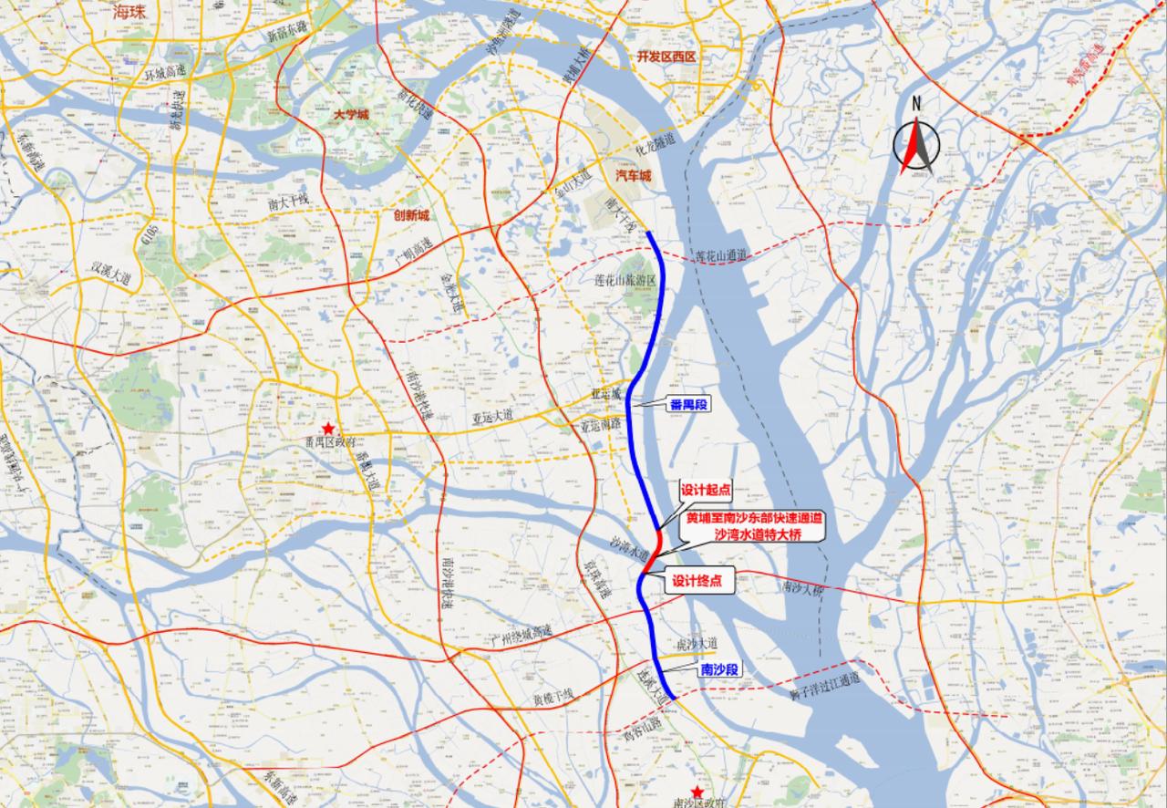 【广州东部快速迎来捷报】之前一直妥妥拉拉的广州东部快速番禺段突然大爆发,捷报频传。黄埔至南沙东部快速通道沙湾水道特大桥施工监理(含中心试验室)3月10日发出招标公告! 招标范围包括里程范围内路基、桥涵、路面、绿化、交通安全设施、机电工程(监控、通信)、供配电、照明工程以及沿线附属设施等,涵盖施工准备阶段、施工阶段、缺陷责任期阶段的施工监理和施工安全监理。还包括项目环境保护、水土保持监理,参建各方竣工档案编制工作监理,配合业主交、竣工验收和配合业主竣工验收前的结算与决算等工作。中标方需负责监理中心试验室筹建工作。施工监理服务期限总计66个月,其中施工准备阶段监理6个月,施工阶段监理36个月,交(竣)工验收及缺陷责任期监理24个月。施工工期调整,监理服务期相应变更。 也就是说,如果大桥可以顺利在今年开工的话,大桥竣工也需要3年的时间。而目前广州东部快速番禺段也还没有实质性的消息,意味着广州东部快速整段要开通的话,还是需要等上好几年了。 根据介绍,沙湾水道特大桥主体部分长约1.5公里,主桥桥跨采用610m =(80 + 450 + 80)m布置形式。主桥上部结构为网状吊杆钢拱桥,下部结构采用V型墩和钻孔灌注桩基础。该桥按双向8车道、一级公路兼城市快速路标准建设,设计速度80公里/小时。 技术标准方面,主跨450米,结构设计使用年限100年,结构安全等级一级,抗震设防烈度7度。