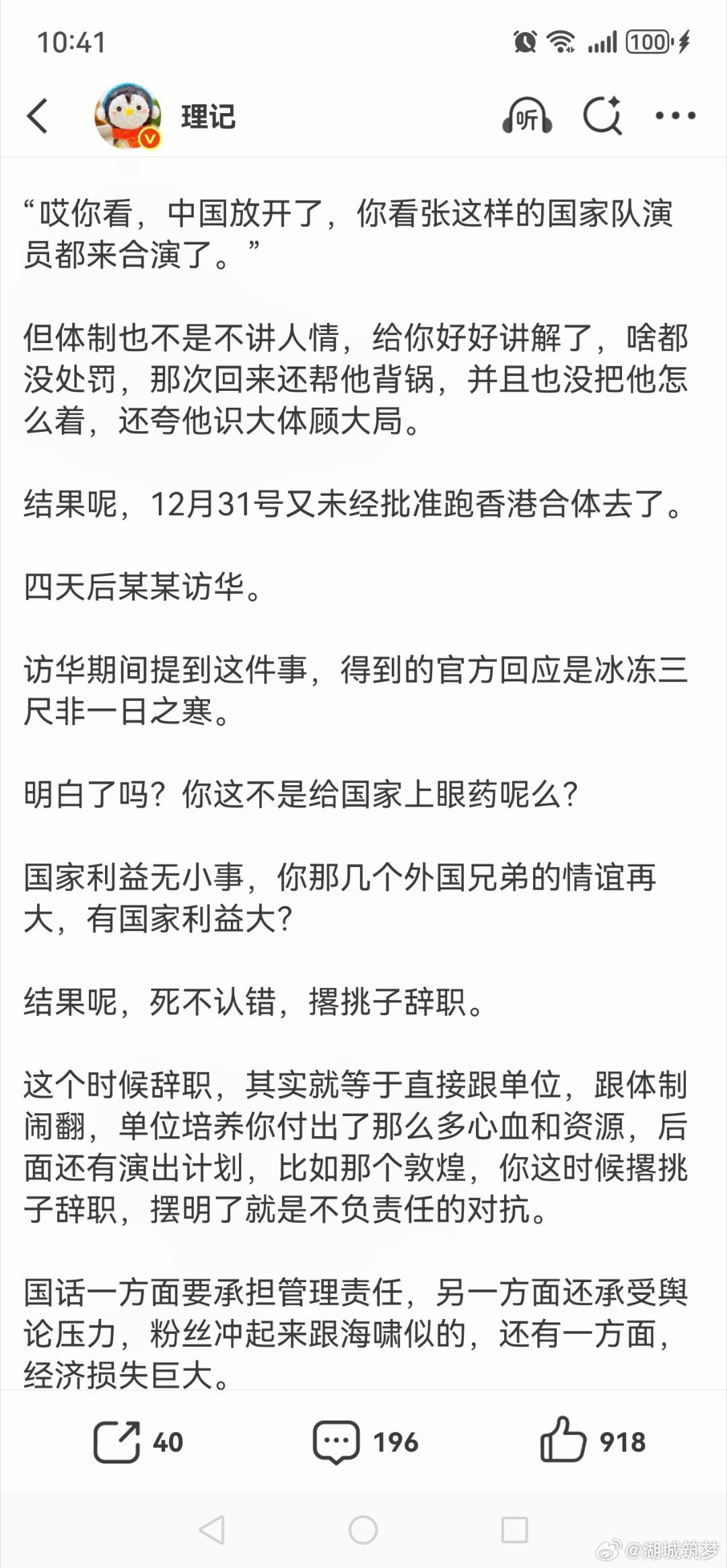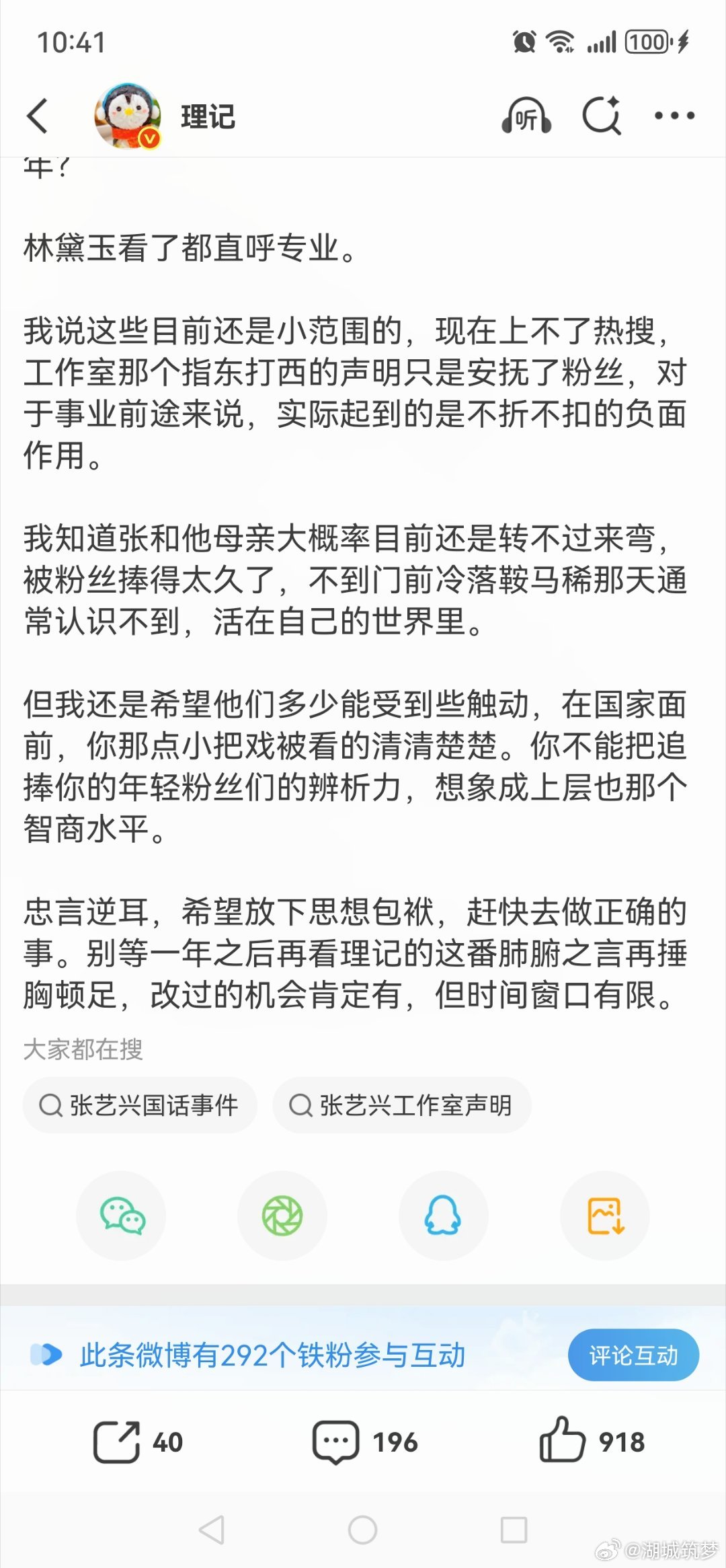 理记再度发长文警告张艺兴这是硬杠上了,厉害了