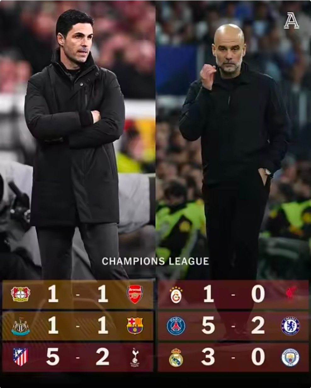 皇马3比0曼城英超寒冬!6队出战欧冠首回合,仅两场平局欧冠1/8决赛首回合战罢,英超球队迎来艰难一夜,6支球队没有一场胜利。利物浦、热刺、曼城、切尔西均输球。纽卡斯尔联和阿森纳勉强拿到平局。最终英超6强交出2平4负的成绩单,表现远低于预期。