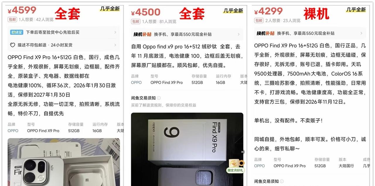 天玑9500旗舰价崩!OPPO Find X9 Pro 16G+512G版,官网5999元,京东优惠后4799元到手。发布不满5个月,120Hz直屏+全焦段哈苏影像,7500mAh电池够顶,就是224克戴套快半斤。二手全套4500左右,全新就贵几百,性价比挺能打~