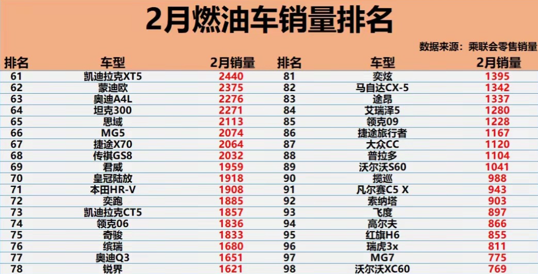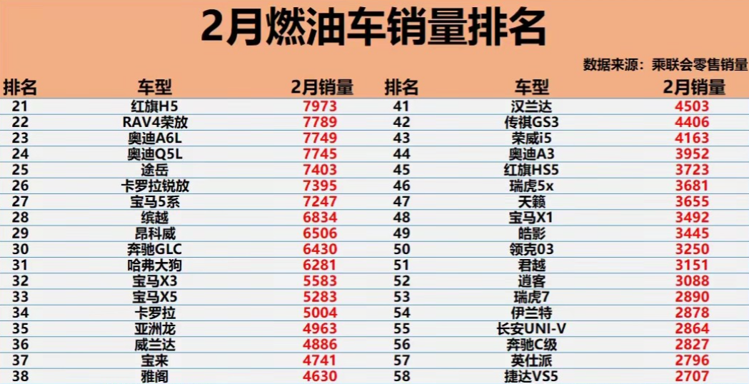 2月份的燃油车销量很有看点啊:合资品牌还是要看大众,太牛了!国产品牌你就买吉利或者奇瑞就对了,另外,B级车四大金刚之一的雅阁销量下滑有点严重啊,究竟是芯片缺乏导致的产能问题还是缺乏亮点的产品竞争力问题?