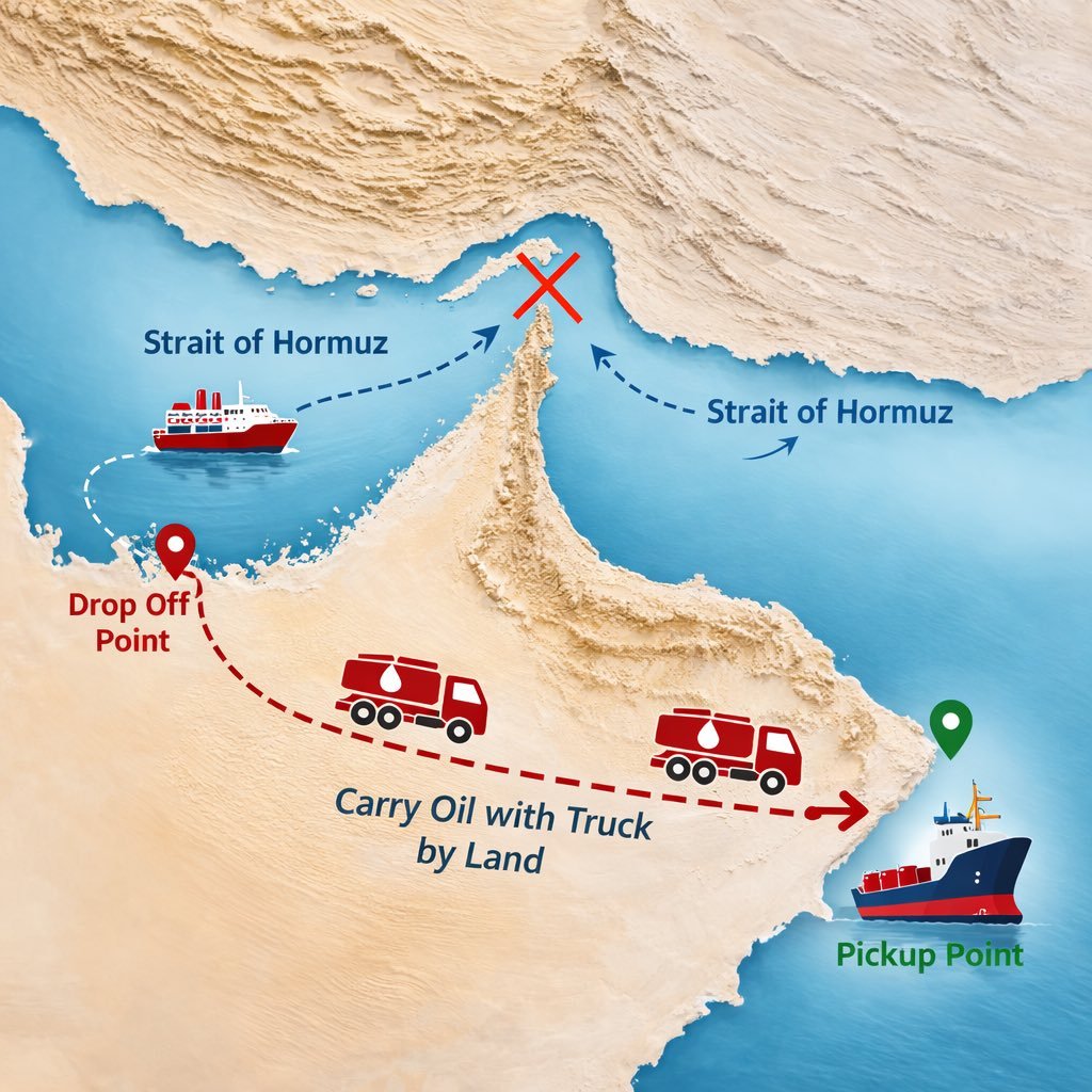 如果不从霍尔木兹海峡走,走陆上运输,这样可行吗?