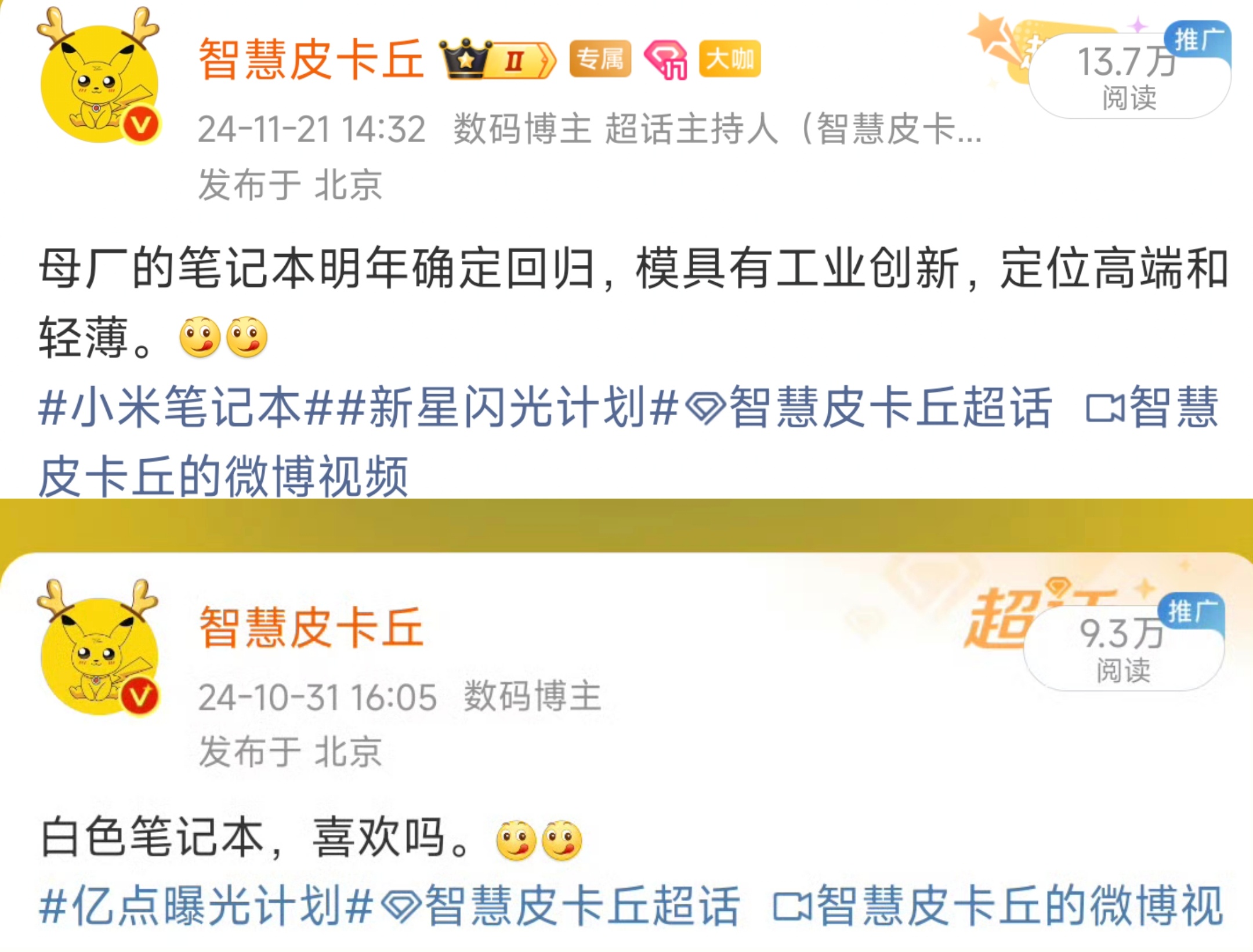 没有独显需求的童鞋可以蹲一波米家,后面还有不少新品,推荐白色。新品驾到小米笔记本Pro14智慧皮卡丘