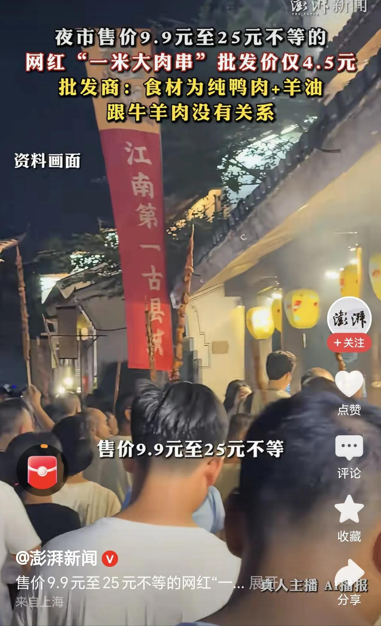 现在各个夜市街头卖的网红产品“一米大肉串”,干脆公开宣传为牛羊肉风味肉串吧,挂“牛羊肉串”的招牌太容易误导人了。这样能够卖到25元一串也算是本事了。 一米大串厂家 街头大肉串 一米大串批发 摊联一米羊肉串 网红1米大串