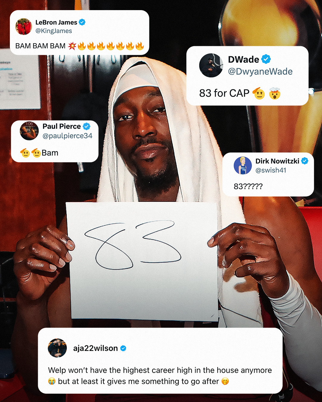 老詹、韦德、皮尔斯、诺天王、卡特、唐斯、米切尔、奥拉迪波、布伦森等一众球星祝福阿德巴约创造历史。NBA