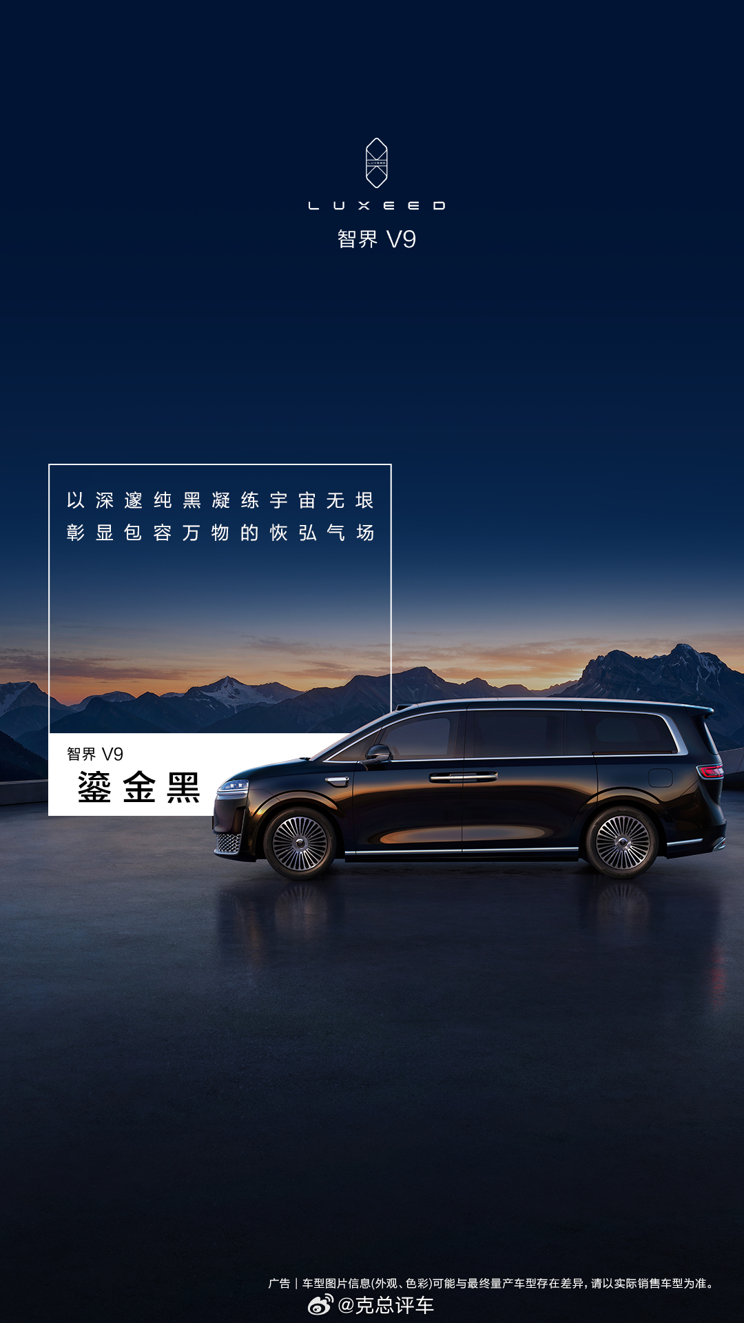 智界V9 来啦!首发「辉光紫」、「深海蓝」、「雪域白」和「鎏金黑」四种车色,以自然至美色彩,铸就大气场!