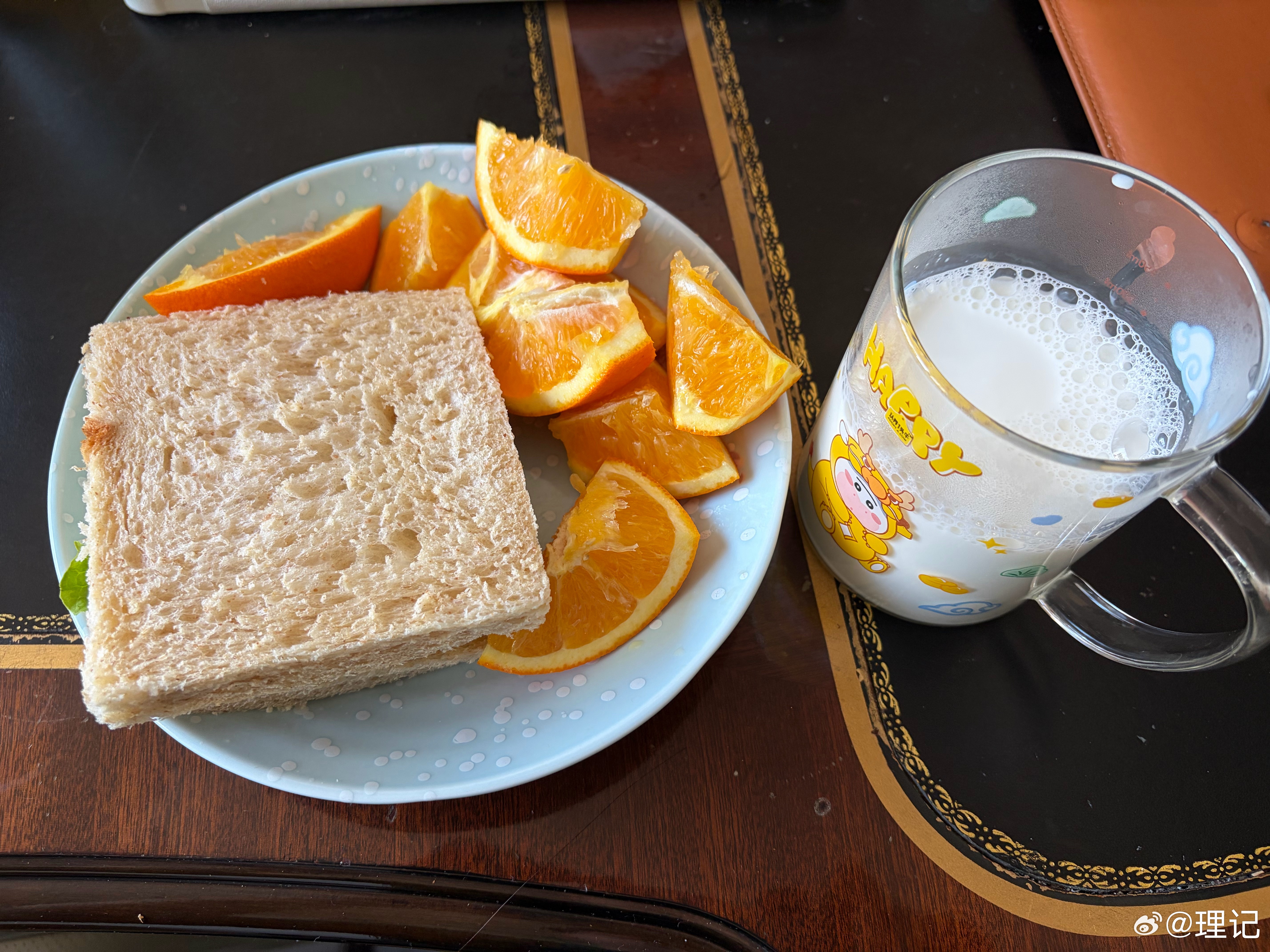 早。早餐:自制全麦面包三明治,内夹生菜火腿和煎蛋。豆浆一杯,橙子一个。