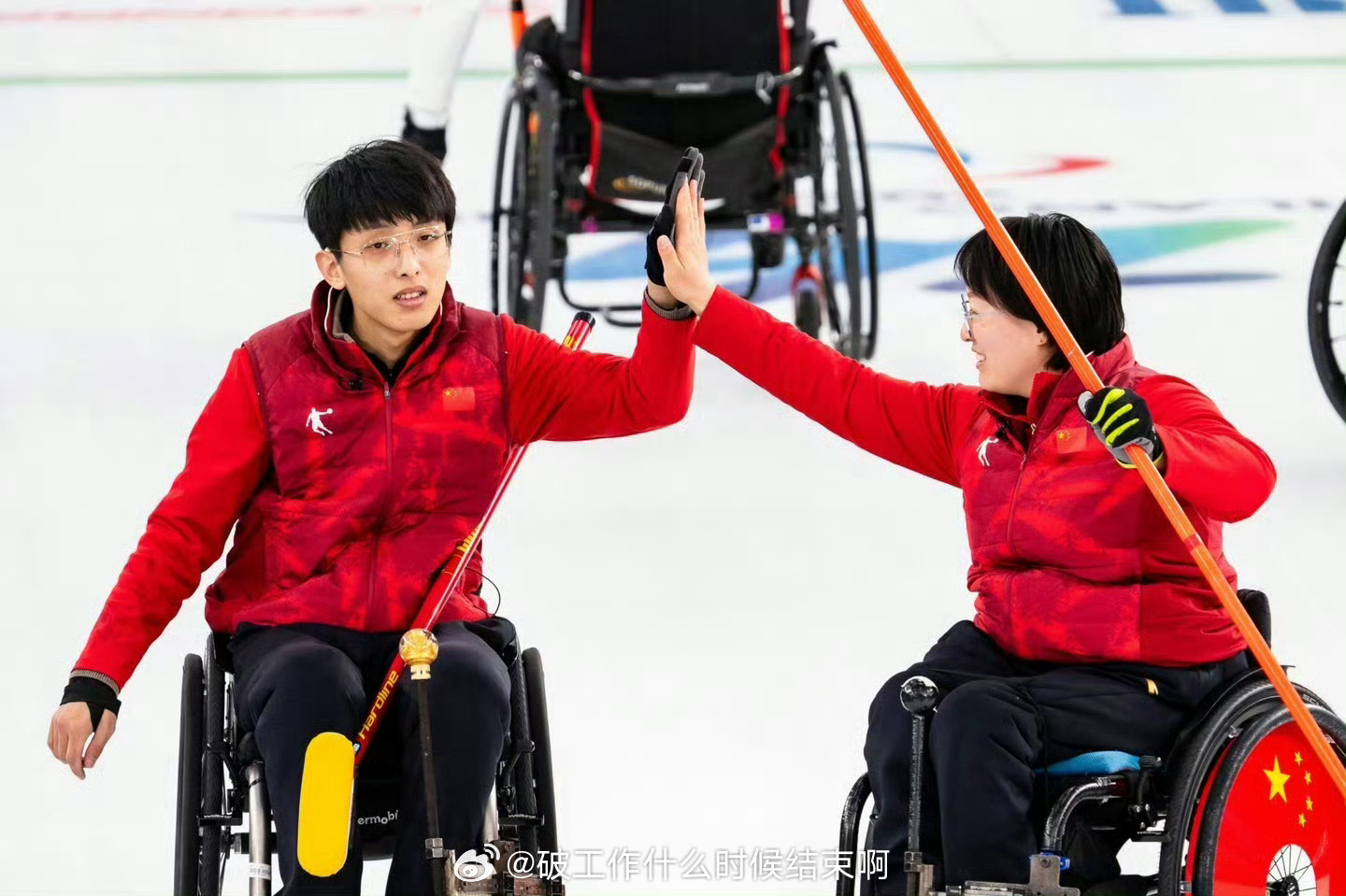 🥇中国队(王蒙/杨金桥)9-7韩国队,也是中国冬残奥历史轮椅冰壶混双首金