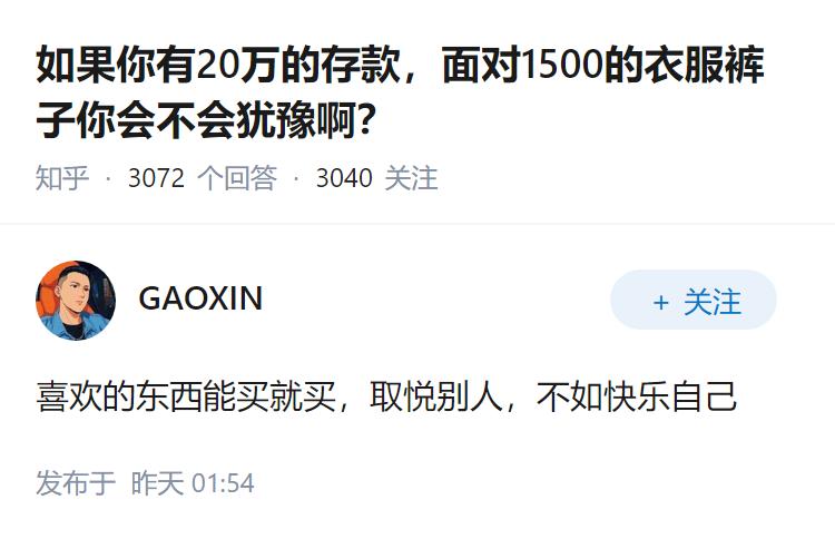 如果你有20万的存款,面对1500的衣服裤子你会不会犹豫啊?