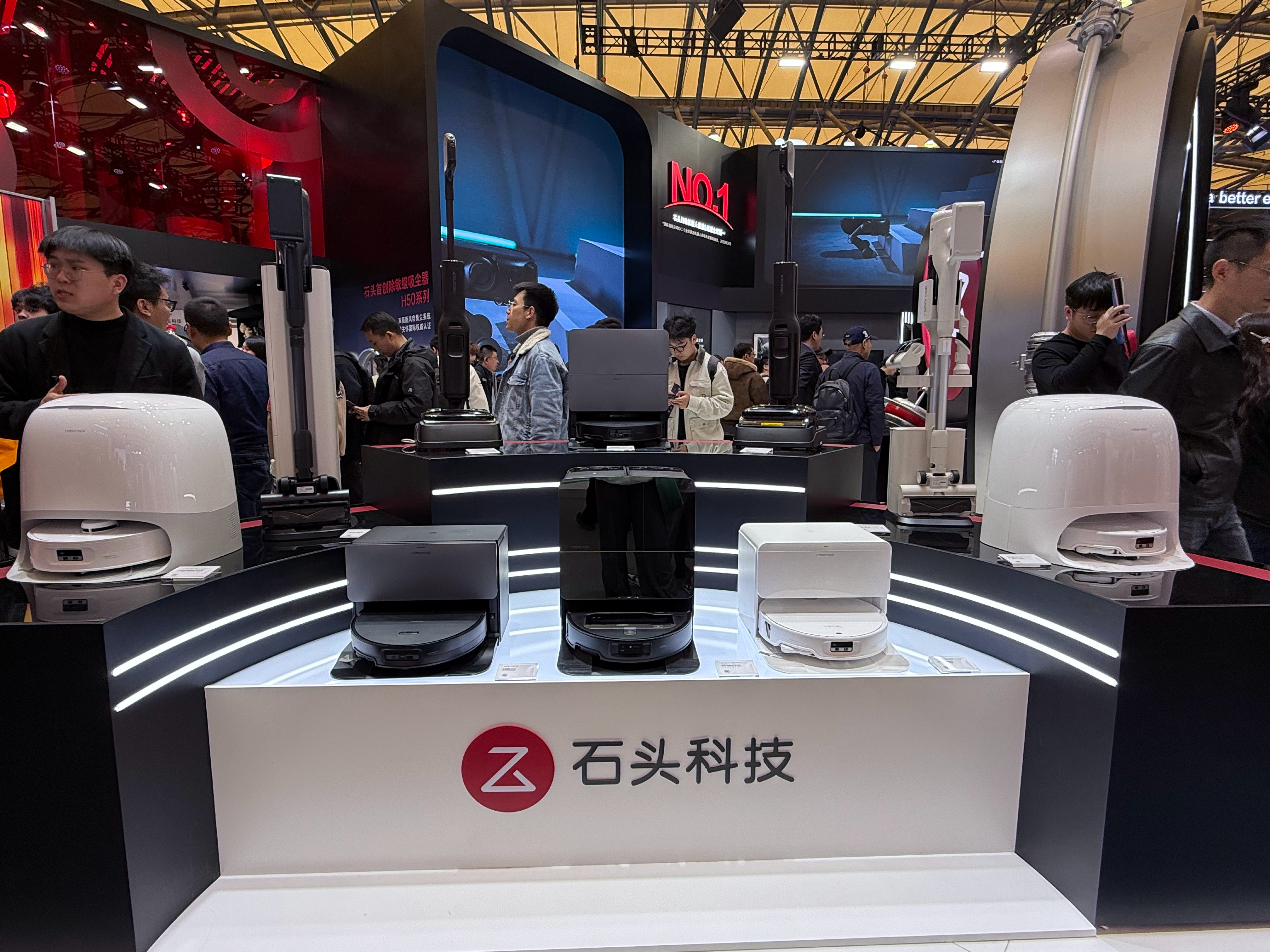 石头这两年真是开挂了~展台布置的很丰富啊。抬头就能看见石头扫地机器人销量全球第一,这可不是瞎说是有国际数据公司IDC的报告背书的。