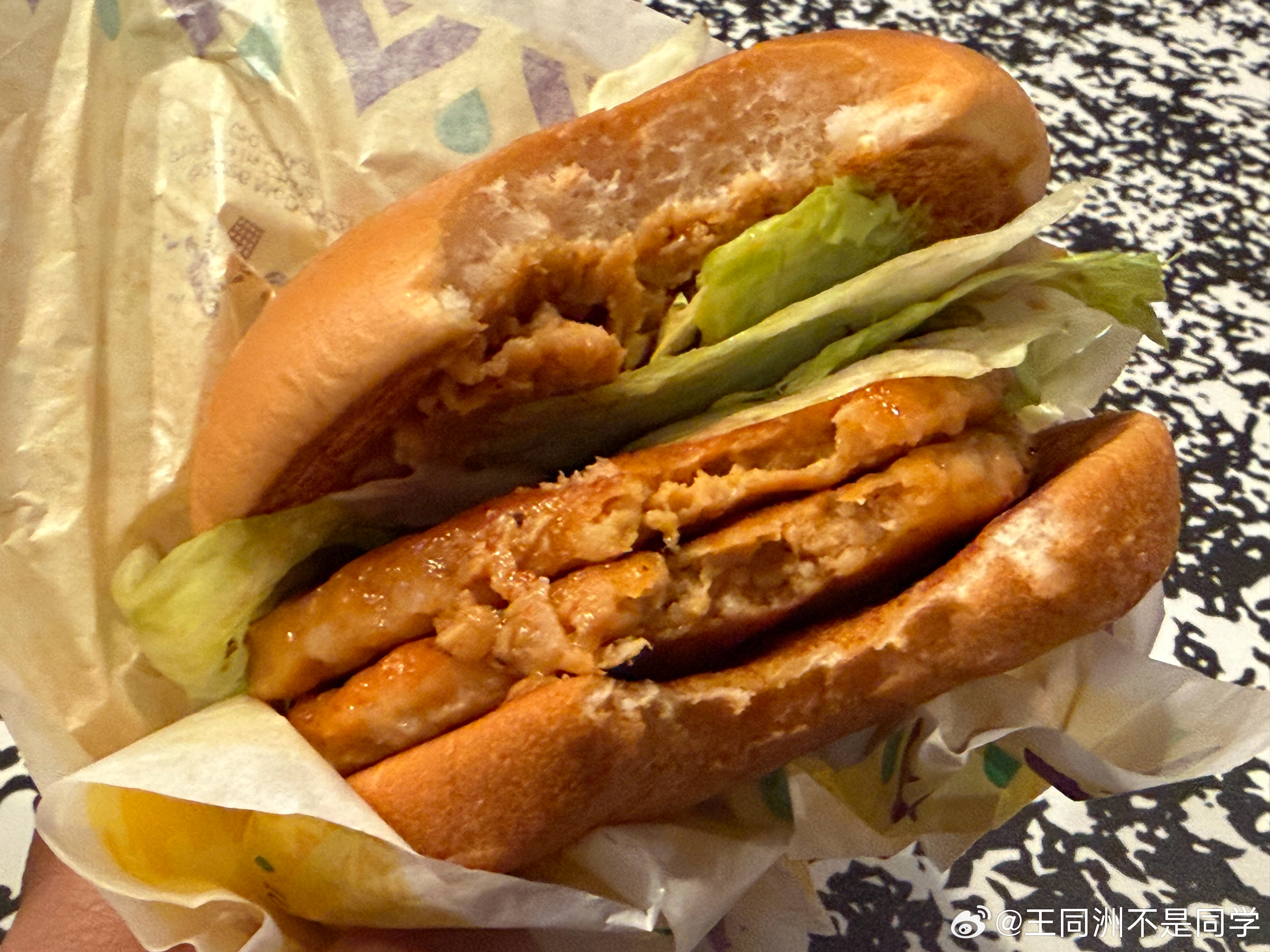 类似板烧的炸鸡青咖喱汉堡,一般,主要炸肉有点硬,但青咖喱酱真的好,很清新