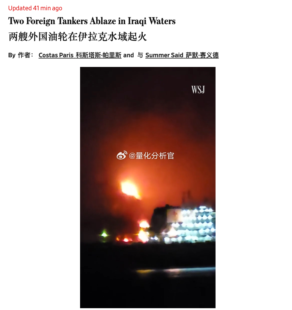 伊朗继续威胁海域,伊拉克海域两艘油轮遭遇袭击安理会决议要求伊朗停止打海湾国家