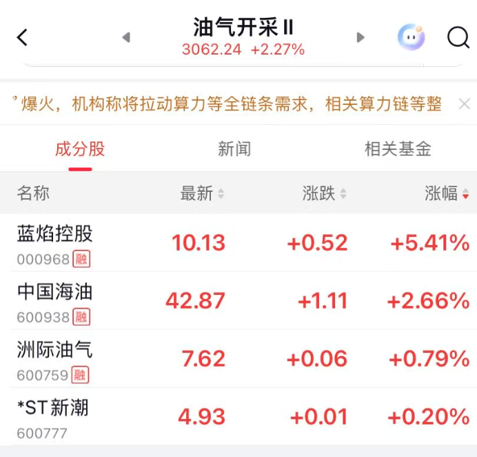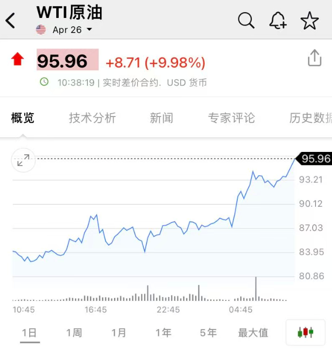 【国际油价再迎大涨】国际油价不断反转据每日经济新闻报道:3月12日,国际油价大涨。截至发稿,布伦特原油大涨10%,重回100美元上方。WTI原油同样大涨10%,每桶报96美元。A股燃气、油气开采板块大涨。
