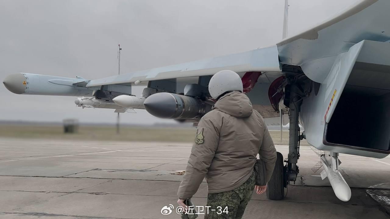 配属俄军“南部”集群执行作战任务的俄空天军苏-35S战斗机的武器挂载配置 两部L-265M10-02“希比内-M”电子战吊舱,两枚R-73M空空导弹,两枚R-77M空空导弹,两枚R-77-1空空导弹,一枚R-37M超远程空空导弹。