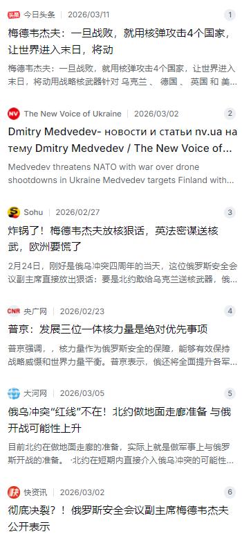 梅德韦杰夫:一旦战败,就用核弹攻击4个国家,让世界进入末日,将动用战略核武器针对乌克兰、德国、英国和美国进行打击,从而引发全球性毁灭。 麻烦看官老爷们右上角点击一下“关注”,既方便您进行讨论和分享,又能给您带来更多优质的内容,感谢您的支持! 俄乌冲突打到现在这个份上,已经不仅仅是两个邻国之间的厮杀,更像是一场随时可能擦枪走火的核赌博。最近,俄罗斯前总统、现在的联邦安全会议副主席梅德韦杰夫又放狠话了,而且这次说得特别具体、特别瘆人:一旦俄罗斯在战争中战败,莫斯科将毫不犹豫地动用战略核武器,直接把乌克兰、德国、英国和美国从地图上抹去,让整个人类社会给俄罗斯陪葬。 这话听起来像是一部末日电影的台词,但在2026年2月底,它确实从莫斯科传遍了世界。事情发生在2月24日,也就是俄乌冲突爆发整整四年的那天。当天早上,俄罗斯对外情报局先扔出了一枚“烟雾弹”,发布声明指控英国和法国正在秘密策划向乌克兰提供核武器部件,或者帮忙制造那种带有放射性物质的“脏弹”,还打算伪装成乌克兰自己的技术,目的是在未来的谈判桌上占据绝对优势。有意思的是,这份声明里特意提到,德国并没有参与这项疯狂的“核计划” 。 这份情报的真假先不论,几个小时后,梅德韦杰夫就在他的Telegram频道上“炸了”。他的逻辑很直接:如果北约国家真的敢向交战国直接转移核武器,那性质就全变了,这就等于彻底撕毁了核不扩散条约。他强硬表态,俄罗斯将采取一切必要手段,不仅会用战术核武器打击乌克兰境内的威胁目标,如果事情继续闹大,打击范围还会扩展到那些提供核武器的供应国本土。他这次没打马虎眼,直接把乌克兰排在第一位,紧接着点名了英国、法国,还顺手带上了德国和美国,暗示这些深度介入冲突的国家谁也跑不掉 。 这番话一出来,整个西方世界立刻绷紧了神经。英国外交部当天就跳出来否认,说俄罗斯的情报纯属胡扯,根本就是在造谣生事。法国也在记者会上重申,自己严格遵守核不扩散义务,从来没动过给乌克兰送核武的念头。德国政府更是一脸懵,表示压根没参与过相关讨论。三国的口径出奇一致,都觉得这是俄罗斯在故意制造恐慌,搞心理战 。 其实,明眼人都能看出来,梅德韦杰夫现在的角色有点像是克里姆林宫的“嗓门”,专门负责画红线、撂狠话。他这么说的核心逻辑,无非是因为俄罗斯在常规战场上打得太吃力了。面对西方源源不断的军援,俄军虽然稳住了战线,但想速战速决也不太现实。在这种常规力量难以碾压对手的情况下,核武器就成了俄罗斯手里最大的那张底牌,是维护国家生存、防止常规战争崩盘的终极保险 。 咱们来掰扯一下他点名的这几个国家,为啥是这四家?乌克兰自不必说,是主战场。英国在援乌这件事上一直跳得很高,给导弹、给坦克,相当积极。美国是背后的总导演,负责给钱给枪给情报。至于德国,虽然这次被俄罗斯情报机构夸了一嘴“没参与核计划”,但作为北约在欧洲的核心枢纽,不仅提供了大批常规武器,还部署着北约的战术核弹,梅德韦杰夫自然不会放过它 。 不过,咱们也得冷静分析,这核弹头真的那么容易扔出去吗?从普京最新的表态来看,事情没那么简单。就在2月23日,也就是梅德韦杰夫放狠话的前一天,普京在“祖国保卫者日”的讲话中强调,发展“三位一体”核力量确实是俄罗斯的绝对优先事项,是安全的保障。但普京也一直没松口说过要主动打核战争,更多是把它当作一种维持战略平衡的威慑力量 。 换句话说,俄罗斯内部的信号其实是有矛盾的:一边是梅德韦杰夫扮演“鹰派”不断拔高调门试探西方底线,一边是普京和拉夫罗夫等核心决策层时不时要出来灭火,强调“核战争没有赢家”。这种“一个唱红脸一个唱白脸”的操作,其实是为了增加威慑的可信度,让西方在援助乌克兰时心里犯怵,不敢真的触碰俄罗斯认定的“生存红线” 。 但话说回来,现在的局势确实比前几年危险得多。以前大家觉得核武器就是个摆设,但看看最近,北约在做地面走廊的准备,美军要大规模通过欧洲运兵,乌克兰也开始用西方远程武器打俄罗斯本土。这些都让俄罗斯觉得,北约是在准备跟自己直接开战 。 在这种情况下,梅德韦杰夫的核威胁就不再是简单的口头吓唬了。按照俄罗斯2024年底更新的核威慑政策,如果俄罗斯遭受常规攻击,哪怕只是大规模无人机和巡航导弹的集中袭击,只要威胁到国家安全,都可以考虑动用核武器。这意味着核门槛实际上被降低了 。 万一真发生核打击,后果确实不堪设想。不说美英法德这些有核国家会立刻反击,光是核爆引发的城市毁灭、核辐射扩散,再加上科学家们老生常谈的“核冬天”——烟尘遮天蔽日、全球气温骤降、粮食绝收,这种全球性的人道主义灾难,真的能让现代社会退回原始时代 。