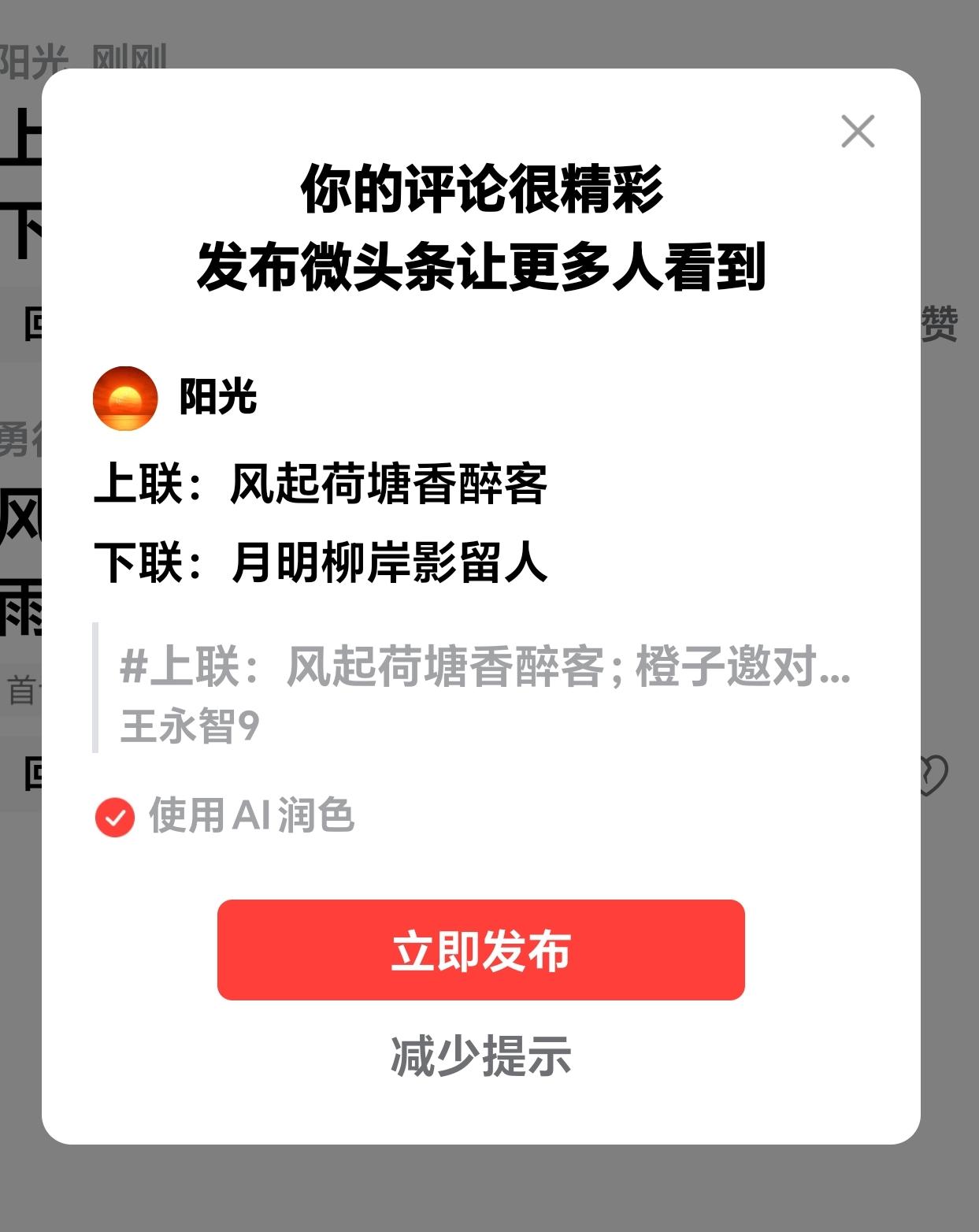 上联:风起荷塘香醉客 下联:下联请友友们对? 微头条 上联:风起荷塘香醉客 下联:月明柳岸影留人 这个下联“月明柳岸影留人”与上联“风起荷塘香醉客”相匹配。 上联“风起”与下联“月明”都是形容词,自然现象相对应; 上联“荷塘”与下联“柳岸”都是地点、名词,相匹配; 上联“香醉客”与下联“影留人”意境相承,相对应。 这幅对联、字数相等、平仄协调,词性对应。共同勾勒出夏夜清风荷香与明月柳影的生动画面。是一幅很美的对联。