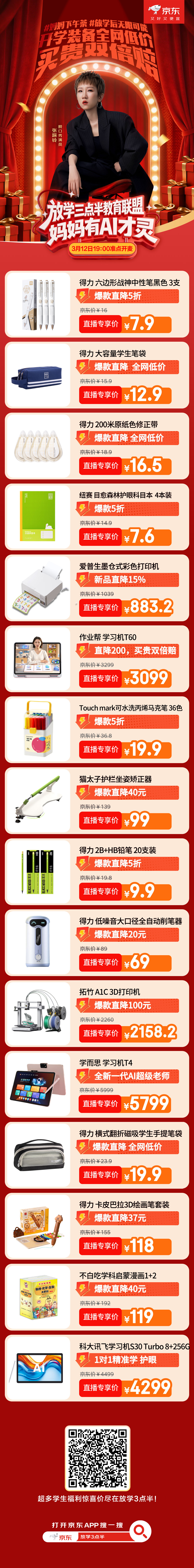 抄作业啦!张踩铃的 “教育严选” 清单,今晚直接闭眼入!代表称老师的职责不该向家长转移 这句话说出太多老师和家长的心声:家长重陪伴与习惯,孩子重独立与责任,老师重专业与教学。与其把压力转嫁给家长,不如交给更专业的 AI 教育工具来分担。别再让家长被作业绑架,用对装备就能轻松很多。跟着妈界嘴替踩玲,省心省钱不踩雷。京东搜【放学 3 点半】,准时蹲守!⏰3 月 12 日 19:00 网页链接 和100位妈妈喝下午茶 放学3点半 京东文具3点半