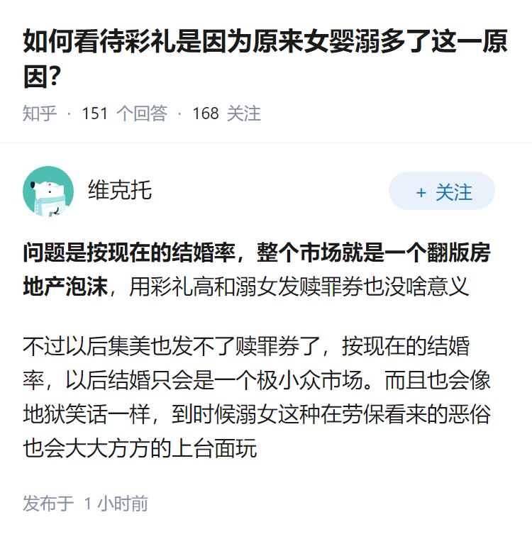 如何看待彩礼是因为原来女婴溺多了这一原因?