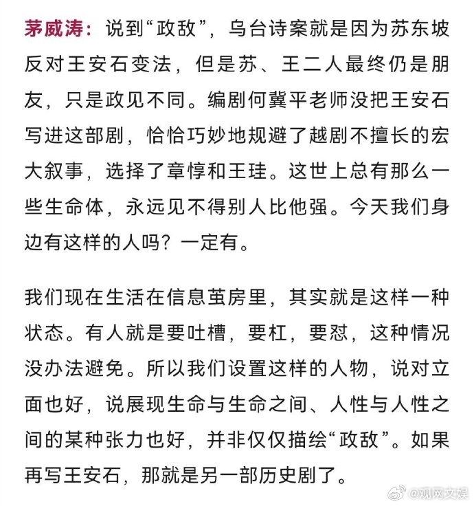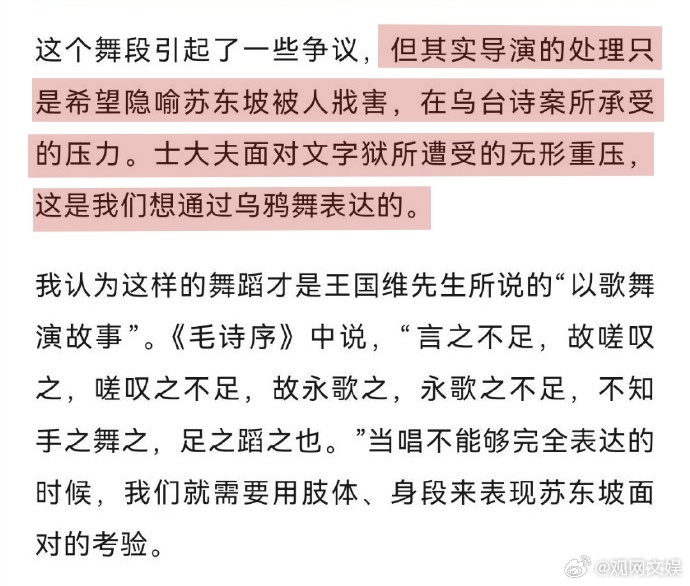【乌鸦舞像跳梁小丑?茅威涛回应了】茅威涛回应乌鸦舞争议 越剧《苏东坡》中的“乌鸦舞”引发部分争议,主演茅威涛老师回应表示:“导演的处理只是希望隐喻苏东坡被人戕害,在乌台诗案所承受的压力。士大夫面对文字狱所遭受的无形重压,这是我们想通过乌鸦舞表达的。”茅威涛
