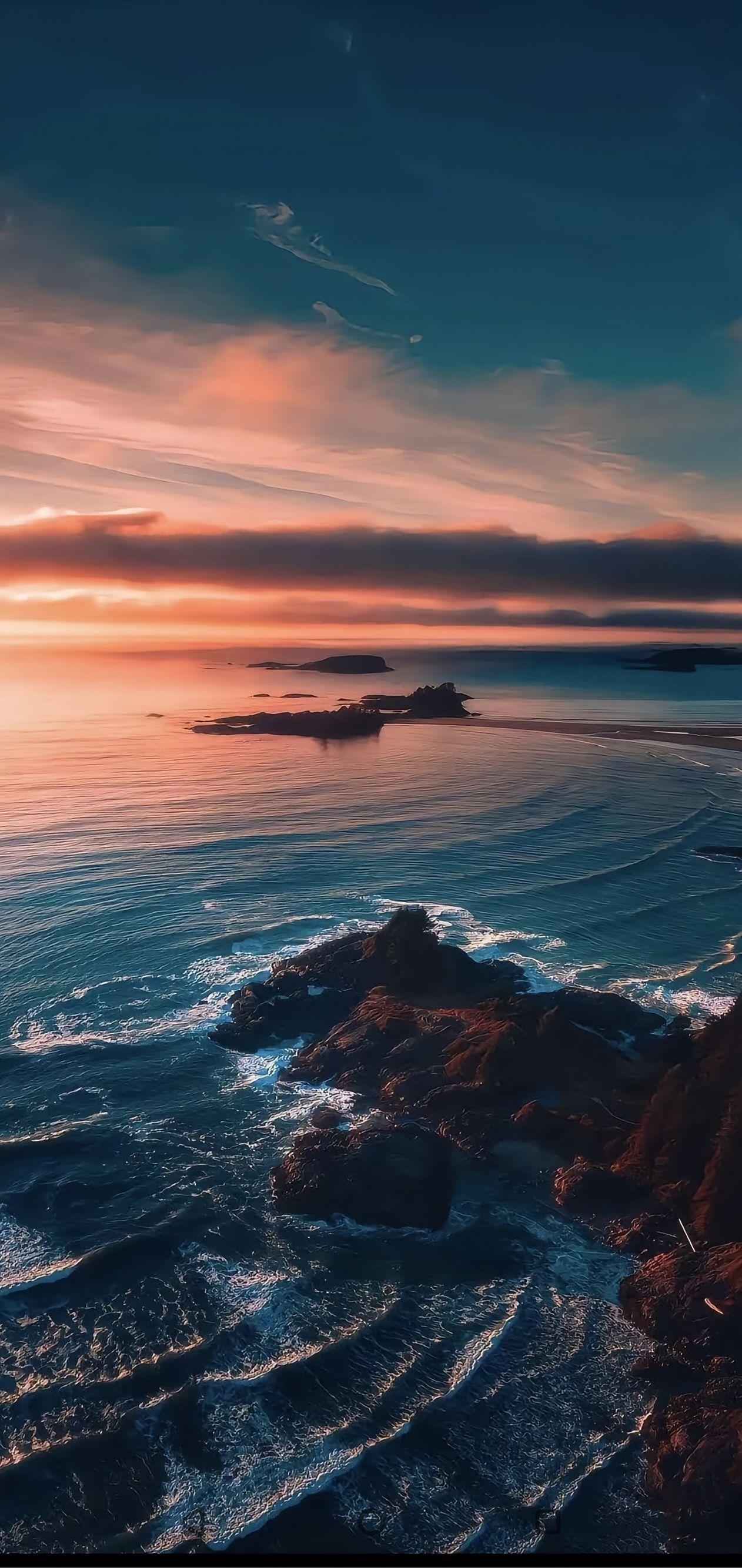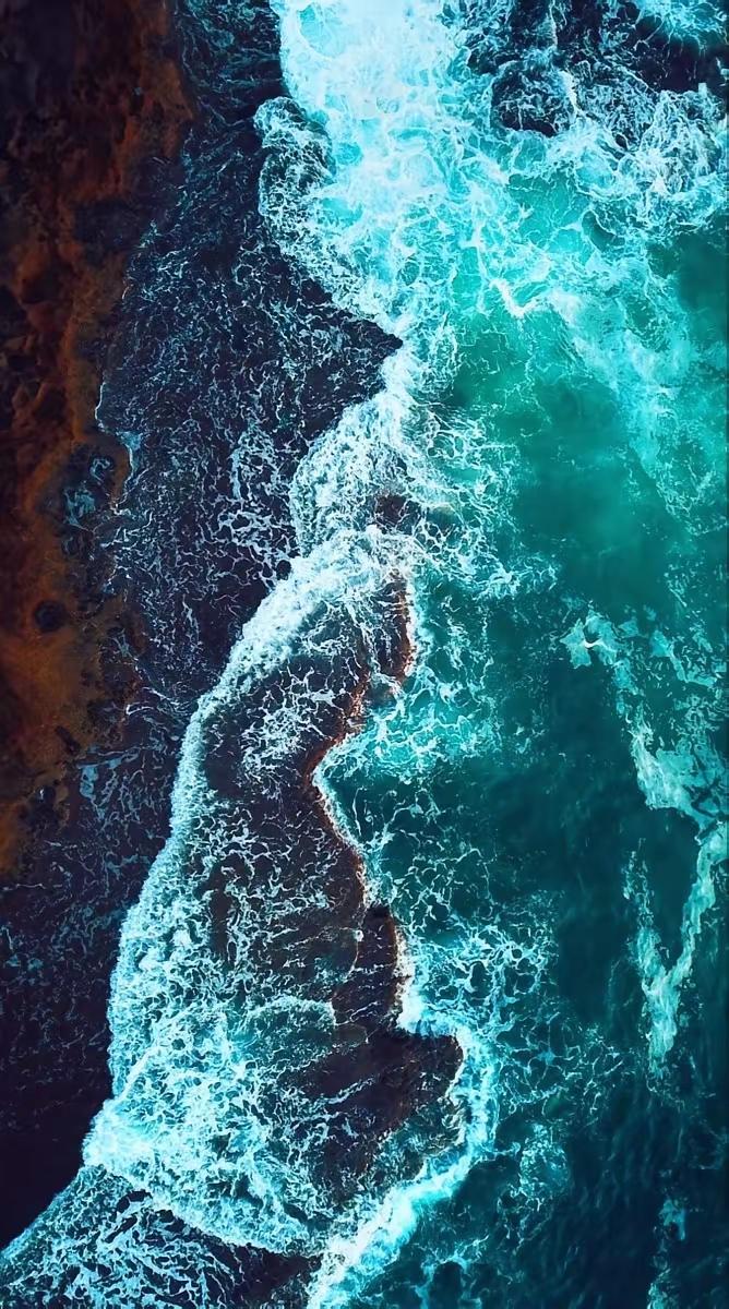 手机壁纸~碧海翻涌,浪花撞碎于礁石,蓝调深邃,水浪交织出自然的磅礴与温柔,治愈又震撼