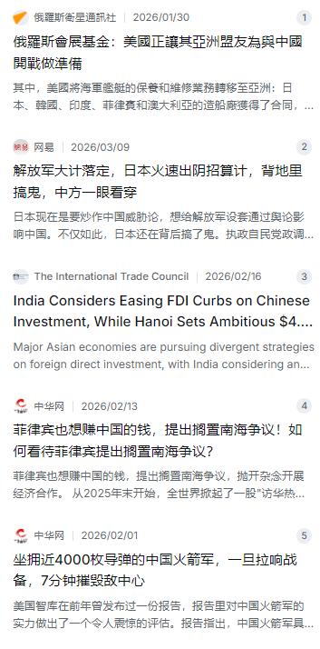 如果美日韩印越菲六国真的联手挑衅中国,别说赢了,光是这支“联合大军”一出现,整个 亚洲 都会“颤三颤”!表面看起来气势汹汹,心里打的小算盘比谁都多,根本凑不到一块。要是真敢在近海动手, 火箭军 一开火,对方不光死伤惨重,还得抱头鼠窜,来多少死多少,绝不是空喊的! 麻烦看官老爷们右上角点击一下“关注”,既方便您进行讨论和分享,又能给您带来不一样的参与感,感谢您的支持! 最近有个话题挺热,说如果美国把日本、韩国、印度、越南、菲律宾这几个国家攒成一个局,搞个“联合大军”来对付中国。这阵仗听起来确实唬人,要是真有这么一票人马杀过来,感觉整个亚洲都得抖三抖。但咱们把话摊开了说,这事儿也就停留在“听起来唬人”的阶段。这帮人心里那点小九九,比算盘珠子还响,根本拨拉不到一块儿去。 美国确实是那个攒局的人,满脑子想把水搅浑,自己好躲在后面捡便宜。但明眼人都看得出来,美国现在的家底儿早就不是当年了,这边要盯着欧洲,那边要顾着中东,全球到处灭火,早就累得气喘吁吁。它在亚洲折腾来折腾去,说白了就是想让小弟们往前冲,自己负责在后面喊加油 。但这种把戏,哪个小弟心里没点数? 尤其是日本,表面上对美国那是鞍前马后,毕恭毕敬,背地里的小动作却一直没停过。就在前几天,又爆出日本人在中国因为涉嫌间谍活动被依法处理的消息,算下来这些年类似的案子已经好多起了 。日本那套老把戏,从一百多年前的“满铁”到现在就没变过,总想着靠偷鸡摸狗的手段来弥补实力上的不足 。它现在的野心早就藏不住了,一边跟着美国摇旗呐喊,一边悄悄给自己松绑,恨不得马上甩掉和平宪法的绳子,重新武装起来,甚至还想搞什么“国家情报局”,这不是心里有鬼是什么? 。 再说印度和越南,别看平时跟中国有点摩擦就显得挺硬气,实际上自家后院的事儿都忙不过来。印度最近就在那儿纠结,当初为了边境问题和咱们闹僵了,限制中国投资,结果发现吃亏的是自己,现在又在考虑要不要把大门重新打开,吸引点中国资本进来救救场 。越南呢,天天喊着要搞经济,定个450亿美元的外资目标,做梦都想拉着中国搞合作赚钱 。这两家心里门儿清,跟着美国瞎起哄能当饭吃吗?把经济搞垮了,老百姓第一个不答应。 最逗的是菲律宾,上蹿下跳演得最欢,号称要当“反华先锋”。结果呢?跟着美国闹了半天,除了拿到几句口头表扬,啥实惠也没捞着。国内物价飞涨,老百姓的日子快过不下去了,抗议一波接一波。最近风向突然就变了,那位驻美大使也不得不改口,说要在南海问题上“降温”,想跟中国搞经济合作,甚至提到了“搁置争议” 。但话说回来,菲律宾这种反复横跳的做派,今天说一套明天做一套,谁还敢轻易信它?它一方面想赚中国的钱,一方面又舍不得美国的军事援助,天底下哪有这么好的事儿? 。 所以说,这六个国家凑一块儿,看着阵仗大,其实是各怀鬼胎。美国想卖军火,日本想借机军事松绑,印度和越南想左右逢源捞经济好处,菲律宾纯粹是瞎起哄没捞着反惹一身骚。这样的队伍,人心都不齐,能有多大战斗力? 当然,咱们不惹事,但绝不怕事。尤其是在咱家门口这片海,情况完全不一样。说白了,如果这帮人真敢在近海动手,那纯粹就是找不痛快。中国的火箭军不是吃素的,几千枚导弹在那儿摆着,各种型号看得人眼花缭乱 。真要到了那一步,从锁定目标到摧毁,留给对方反应的时间可能就一杯咖啡的工夫。美国智库自己推演过多少次?推来推去都是个死局。什么航母战斗群,什么隐身战机,在咱们的区域拒止体系面前,就是活靶子。到时候别说打赢了,能跑得掉都算祖上积德。 咱们现在有这个底气说这个话,不是因为脾气大,而是因为手里的家伙硬。这些年解放军的变化,大家有目共睹。无论是东风导弹的“打水漂”技术,还是天上飞的、海里游的,早就不是当年那个靠着勇气打仗的年代了。我们追求的是和平,但也得准备一手,让那些想动手的人明白,代价是他们绝对承受不起的。 所以说,那支所谓的“联合大军”,充其量也就是个吓唬人的纸老虎,拿出来唬唬人可以,真拉到战场上,立马现原形。中国近海,不是它们能撒野的地方。