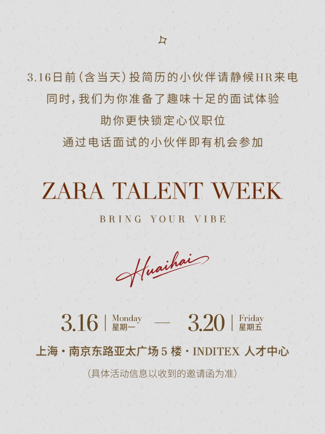 📍活动地点:上海-南京东路亚太广场5楼-INDITEX人才中心(具体活动信息以收到的邀请函为准)