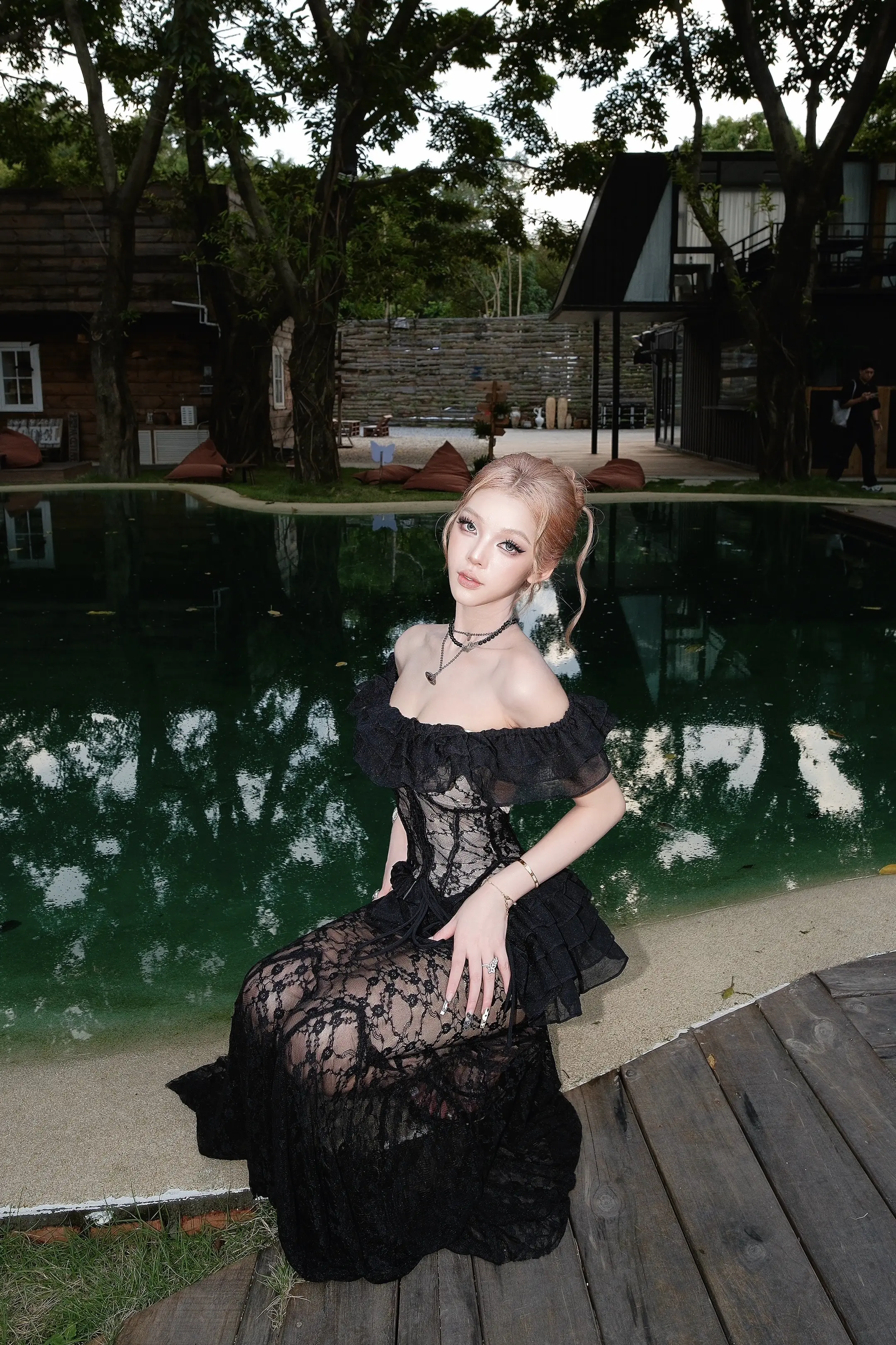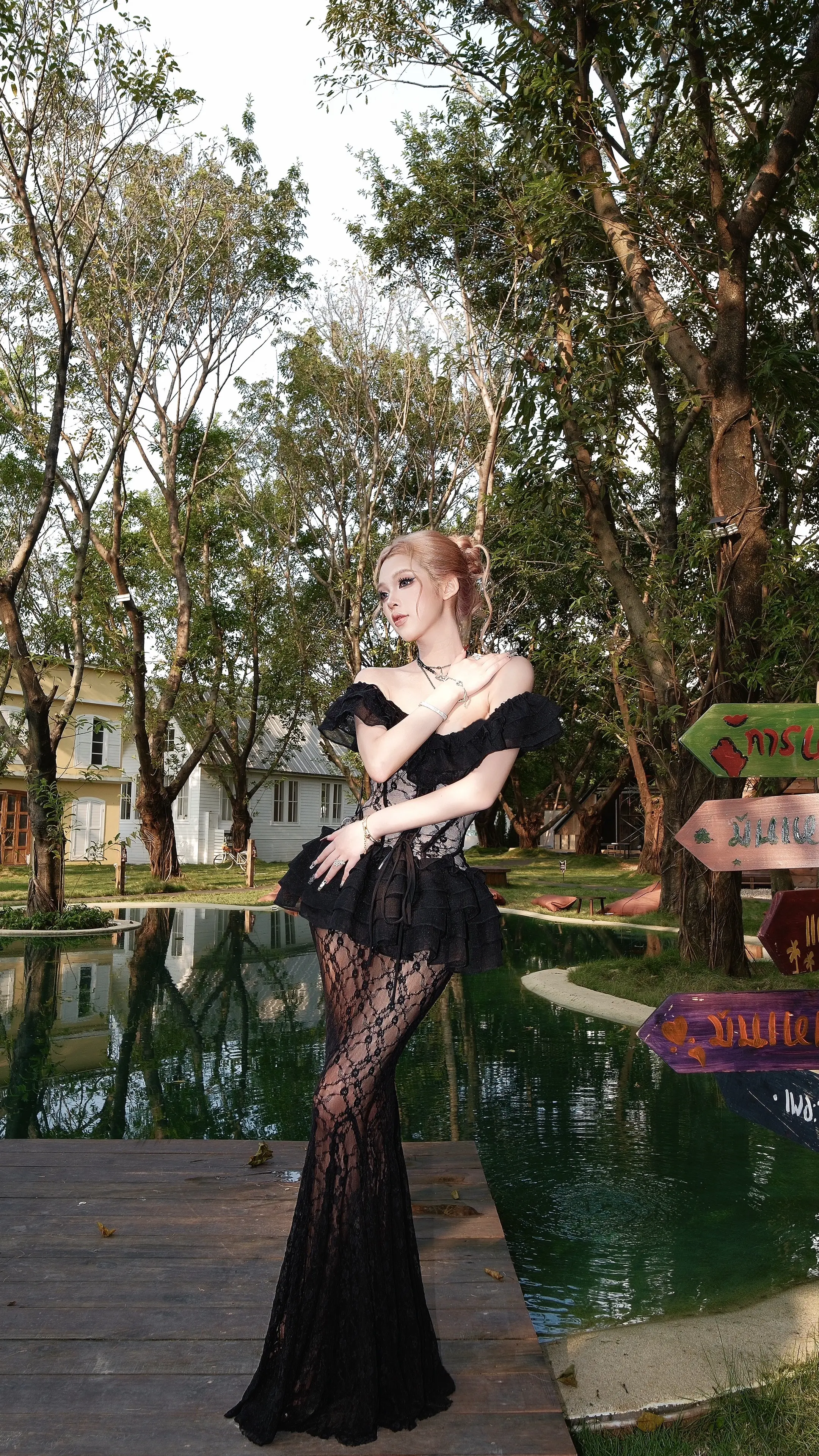 素衣裹身,红发撩人,于园林深处,藏一份不被打扰的矜贵
