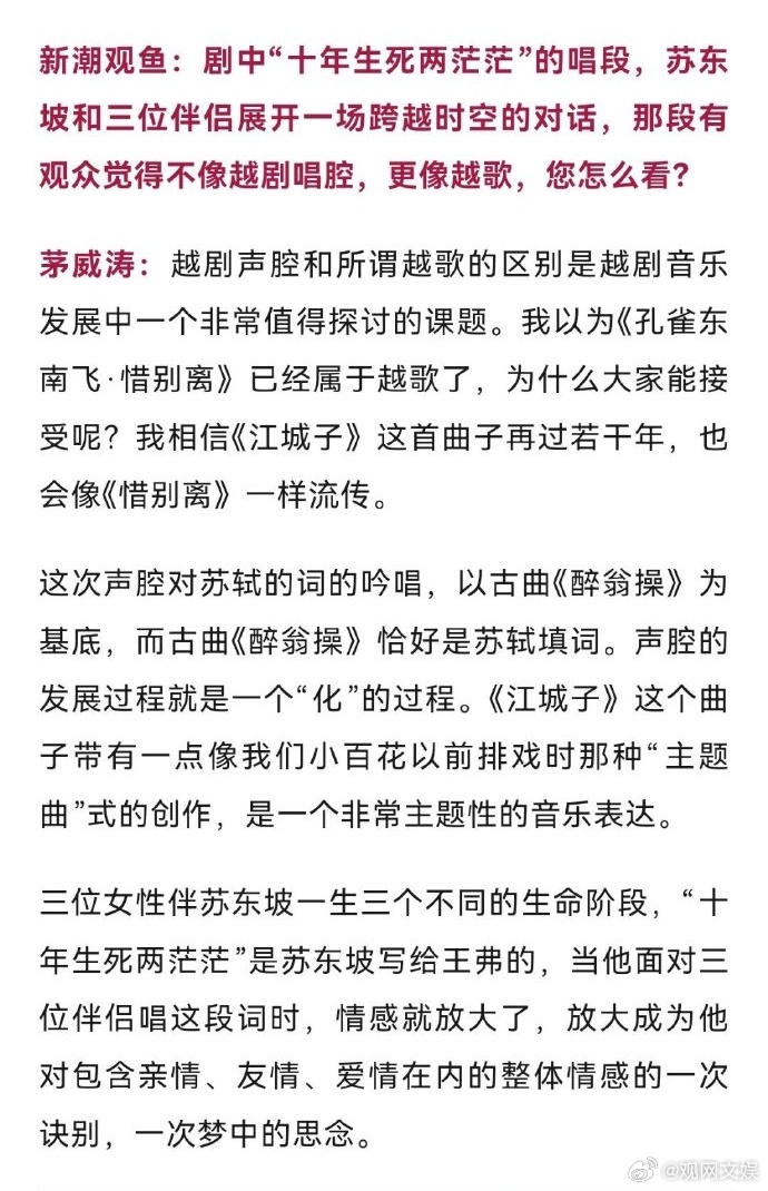 越剧《苏东坡》中“十年生死两茫茫”写给王弗却唱给三个女性?茅威涛这样看茅威涛回应