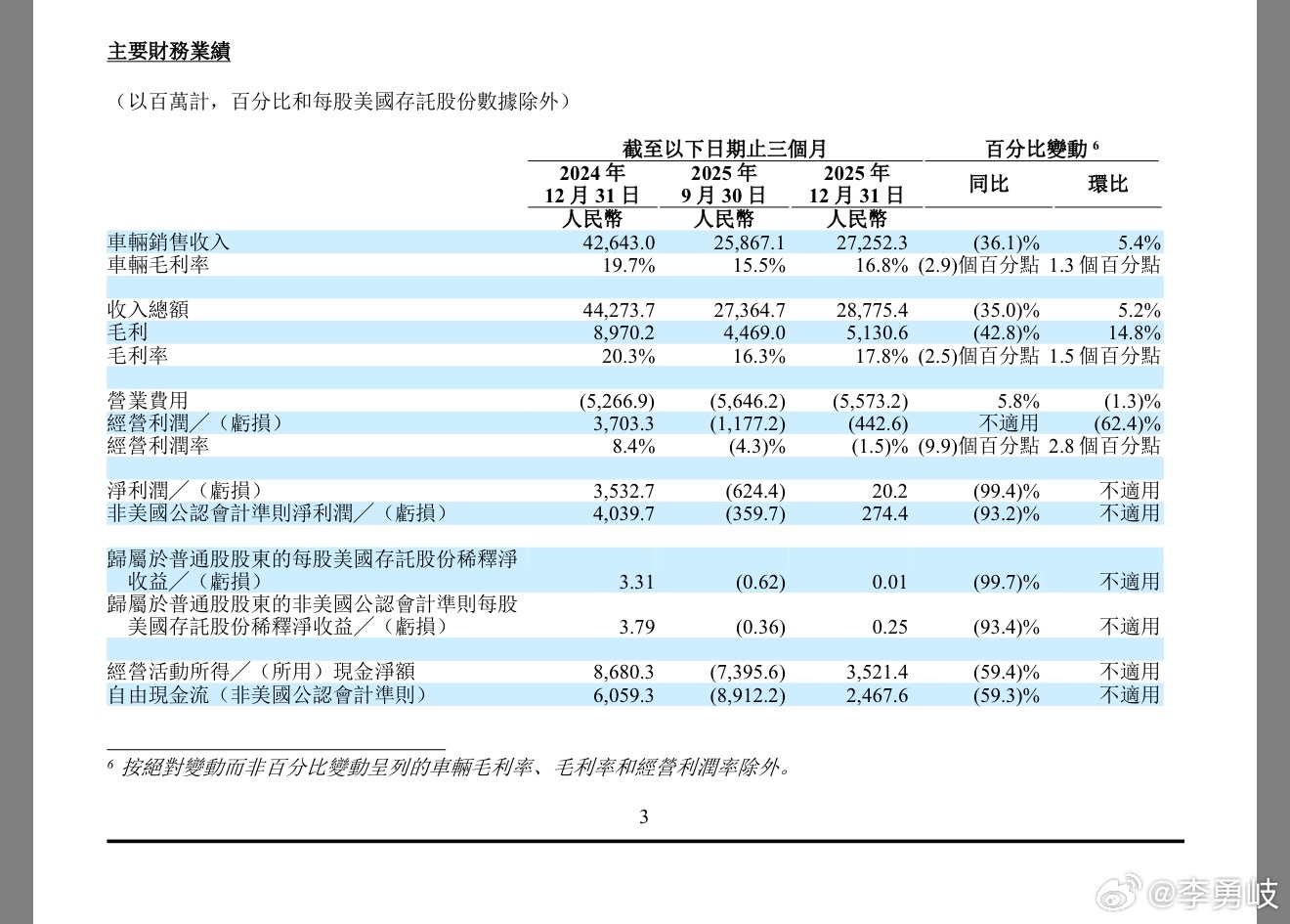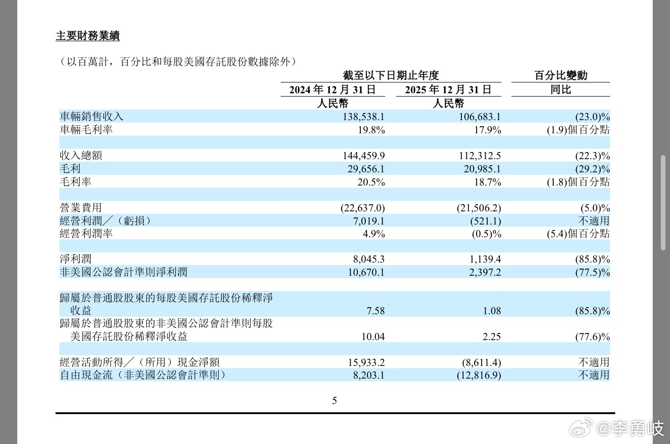 理想汽车2025年营收1123亿元,连续三年盈利,现金储备1012亿元,稳居新势力第一,理想L9 Livis二季度上市!理想汽车发布2025全年财报3月12日,理想汽车公布2025年第四季度及全年财报,2025年营收1123亿元,净利润11亿元,现金储备1012亿元——成为国内唯一连续三年营收破千亿、连续三年实现盈利的新势力车企,稳居行业财务健康标杆地位。全年研发投入113亿元创历史新高,平均每月近10亿元,其中AI相关投入占比50%;过去三年累计研发投入达330亿元,软硬件全栈自研的具身智能技术底座已全面成型。全新一代理想L9将于二季度上市,首发搭载自研马赫100芯片、全球首个量产全线控底盘及800V全主动悬架系统,是理想三年技术投入的首次全面兑现,将实现产品力的代际突破。理想i6产能瓶颈已突破,3月月产能将达2万辆,纯电车型占比持续提升;增程+纯电双轮驱动格局正式成型,2026年进入全新增长周期。2025年是理想汽车完成从汽车企业向具身智能企业的战略升级关键年份——从组织到产品,从研发到销售,全面面向具身智能时代完成重构,四季度以来调整成效显著,为2026年全新产品上市和技术代差验证奠定坚实基础。113亿元研发投入、1012亿元现金储备、超4000座自建超充站、539家直营门店,构成2026年重回增长轨道的完整基础。2026年,随着搭载自研马赫100芯片的全新一代理想L9正式上市,理想汽车将以三年技术积累的首次全面兑现,重新定义具身智能时代的旗舰SUV标准,秉持“主动积极,改变世界”的全新使命,持续为用户创造更好的产品与服务。