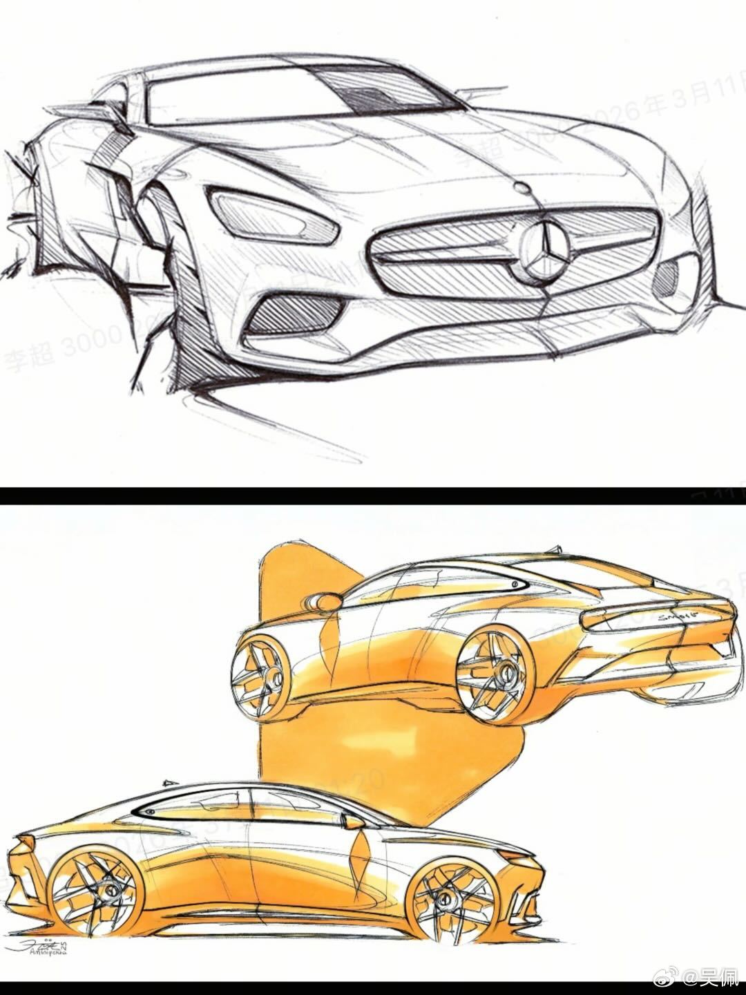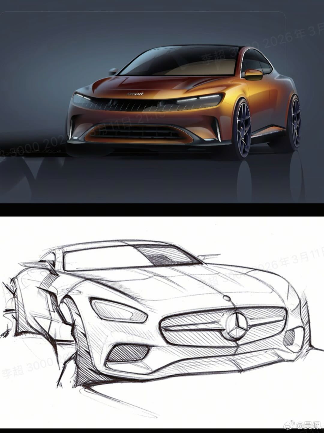 聊起他跟smart第一款大轿车,是因为刚拿到了他的一些设计手稿。精灵6号之前发了官图,网友有一些不同的声音,但我觉得不着急,看完实车再去给它的设计做结论也不晚,说不定到时候你能找到类似于AMG GT那种「动感与优雅并存」的感觉。新车年中就会正式上市了。大V聊车汽车设计