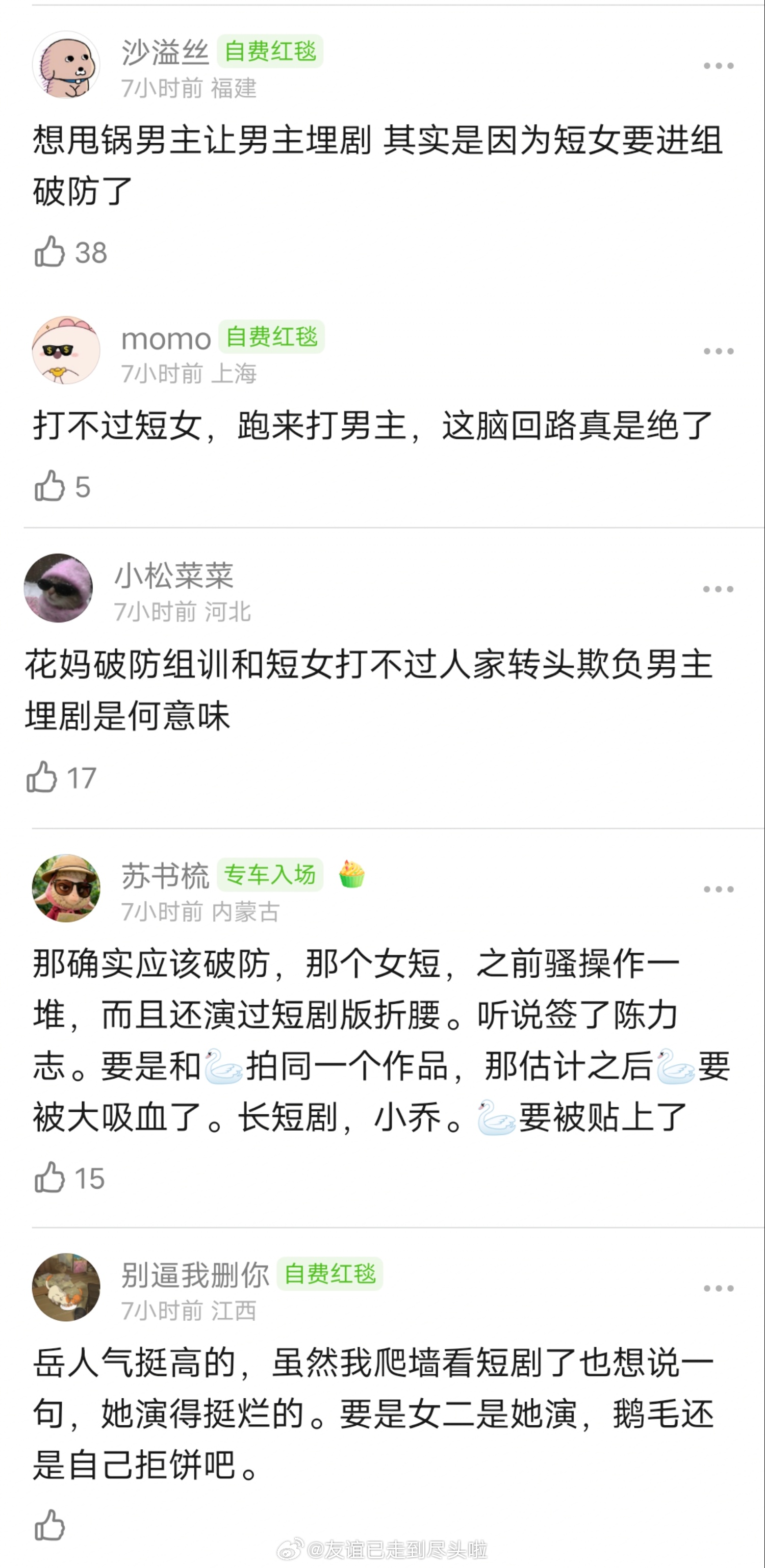 网传岳雨婷要进组《司宫令》,她演过《折腰》《无忧渡》短剧,还营销过短剧版宋祖儿。女主粉丝因为这个选角破防,再加上平后,不想要司宫令这个项目了,然后莫名其妙一堆操作,就导致了现在这个烂摊子。。。司宫令 宋祖儿丁禹兮 司宫令