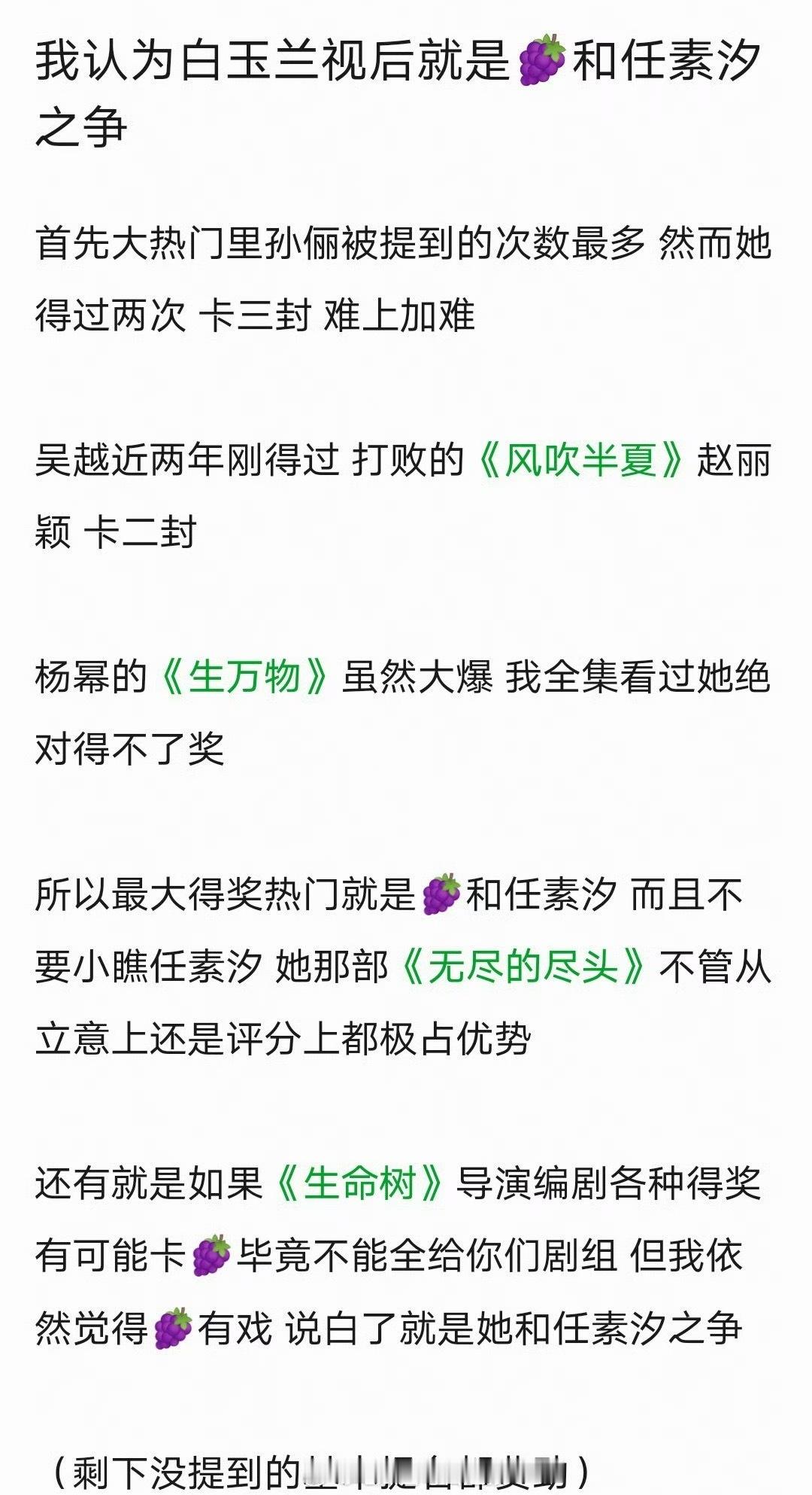 网友热议,本次的白玉兰视后会从杨紫、任素汐里二选一,同意吗