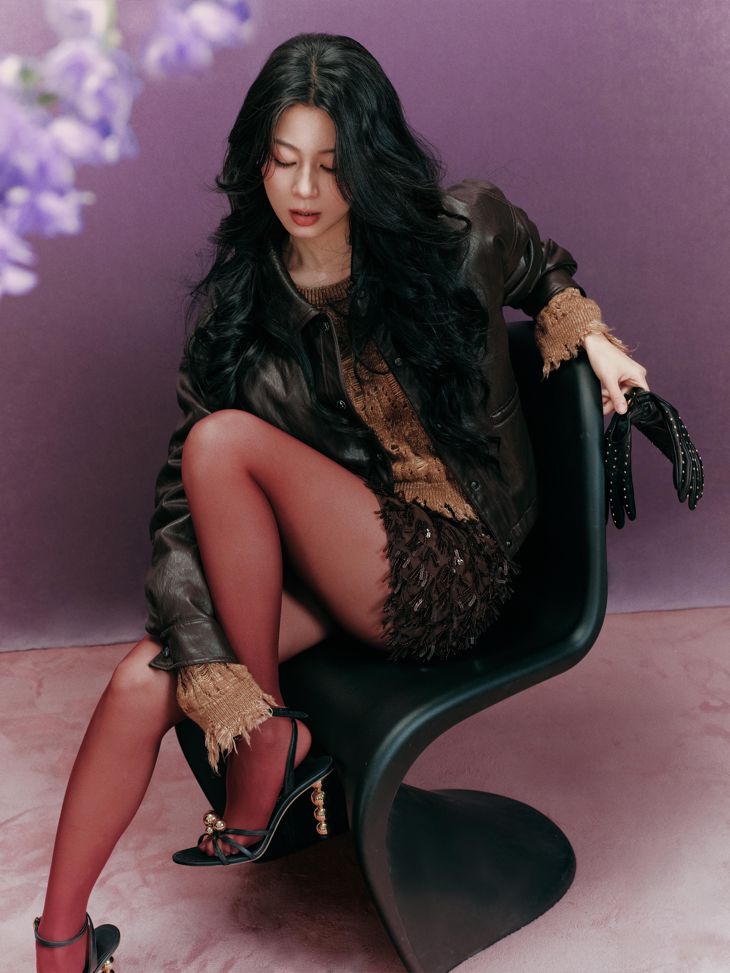 赵昭仪 赵昭仪黑丝诱惑银色一字带绑带细高跟