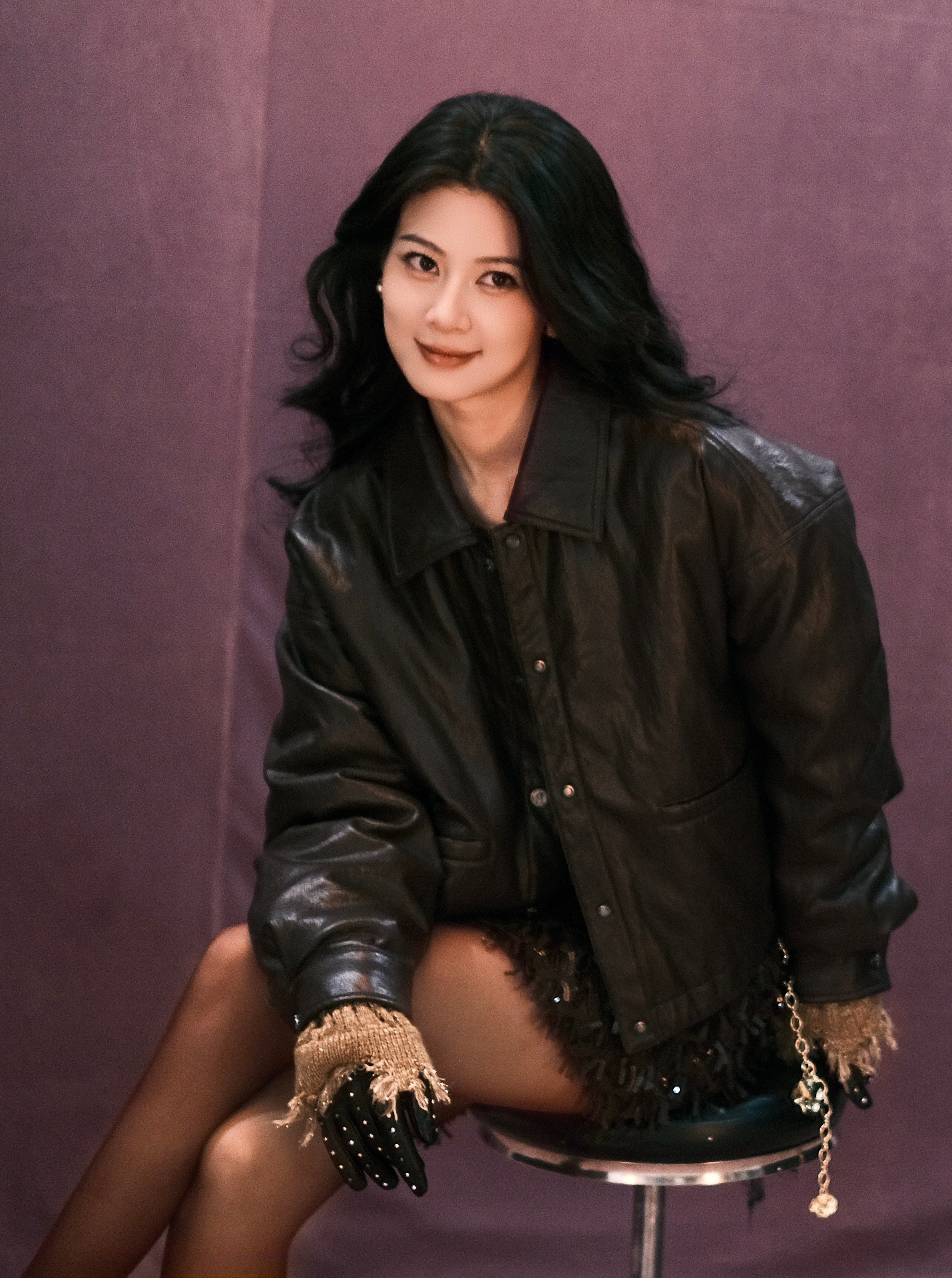白鹿唐宫奇案红毯白鹿白鹿黑色抹胸裙 黑色裤袜 黑色高跟鞋