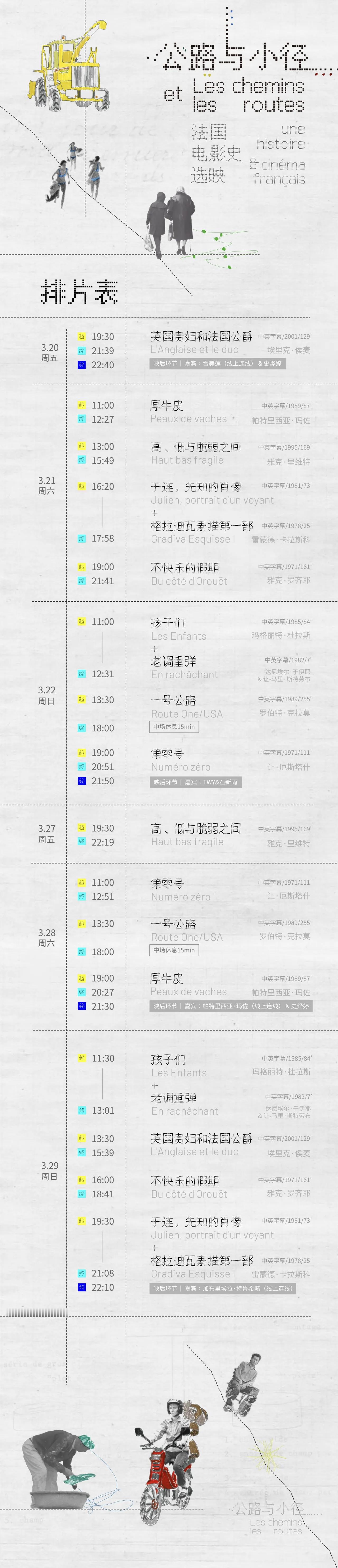 影展 公路与小径:法国电影史选映·杭州站排片表公布,3月13日中午12点正式开票!这个策展挺特别的,物料也非常好看