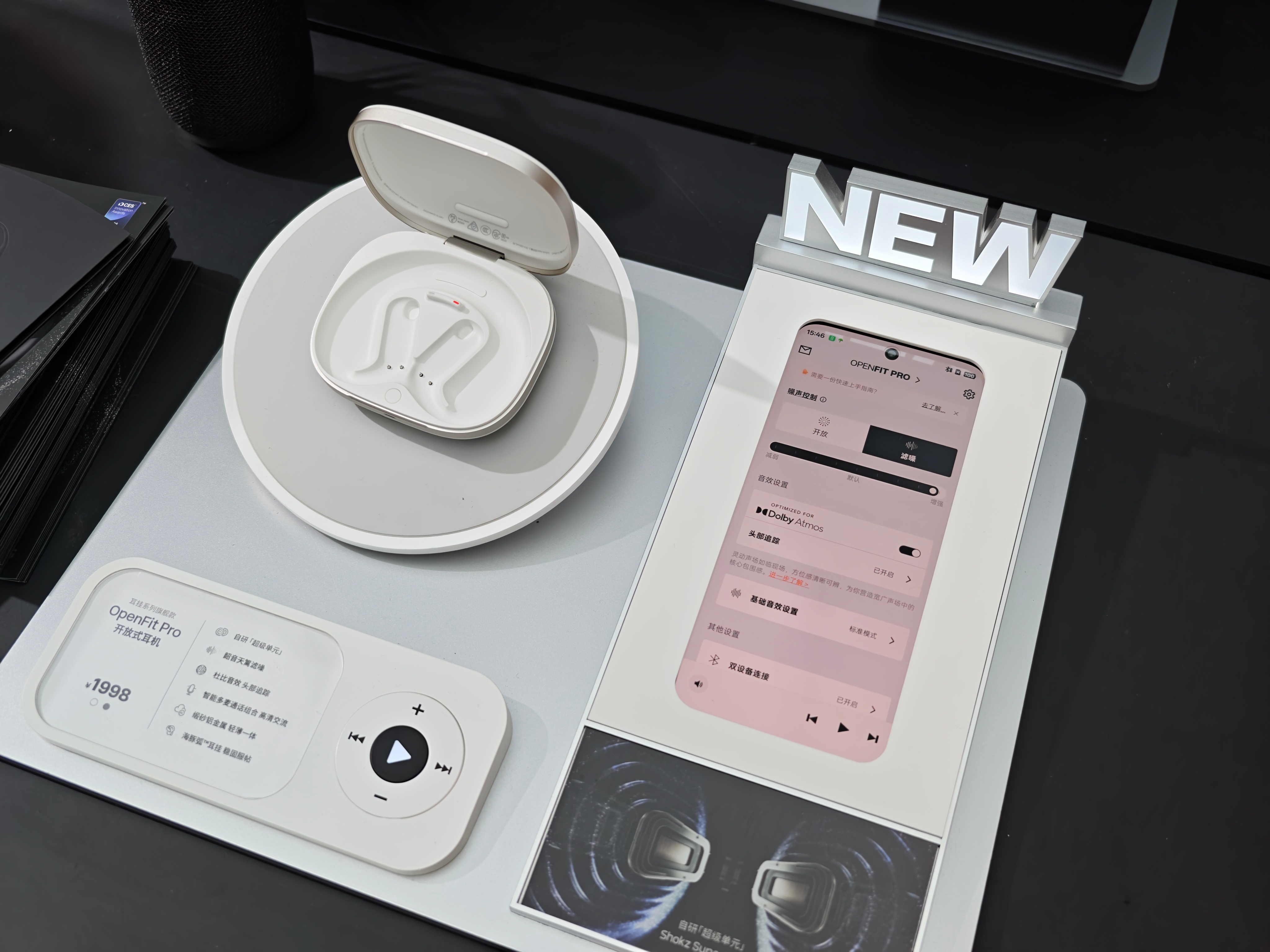 AWE2026 今天去韶音展台体验了下新品OpenFit Pro,作为一款开放式耳机,它的降噪效果超出预期,在场馆这种嘈杂环境里,大部分噪音都能压得住。一直以来开放式耳机的降噪都是短板,但韶音这次用全新的PMI复合铝中贴解决了中高频降噪问题,再加上自研天篱滤噪技术,能智能削弱空调声、街道杂音这类环境噪音。既保留了开放式耳机的环境感知安全,又能专注听音,还基于千人数据调了音质,听感更贴合大多数人。不止降噪能打,音质和佩戴感也直接拉满旗舰水准。它搭载自研Shokz SuperBoost™超级单元,采用11×20mm同向双振膜架构,音域覆盖50Hz-40kHz,失真度大幅降低,还是韶音首款支持杜比音效+头部追踪的机型。后来在试听室沉浸式感受了下,杜比音效+头部追踪一开,头转声音跟着调,声场灵动,沉浸感直接拉满。现场还模拟了机场、咖啡厅、健身房这些场景,戴上就能直观感受到滤噪效果,这些场景对降噪的需求都很高。整体来说,这款耳机真的是惊喜满满AWE2026有哪些亮点 上海·上海新国际博览中心